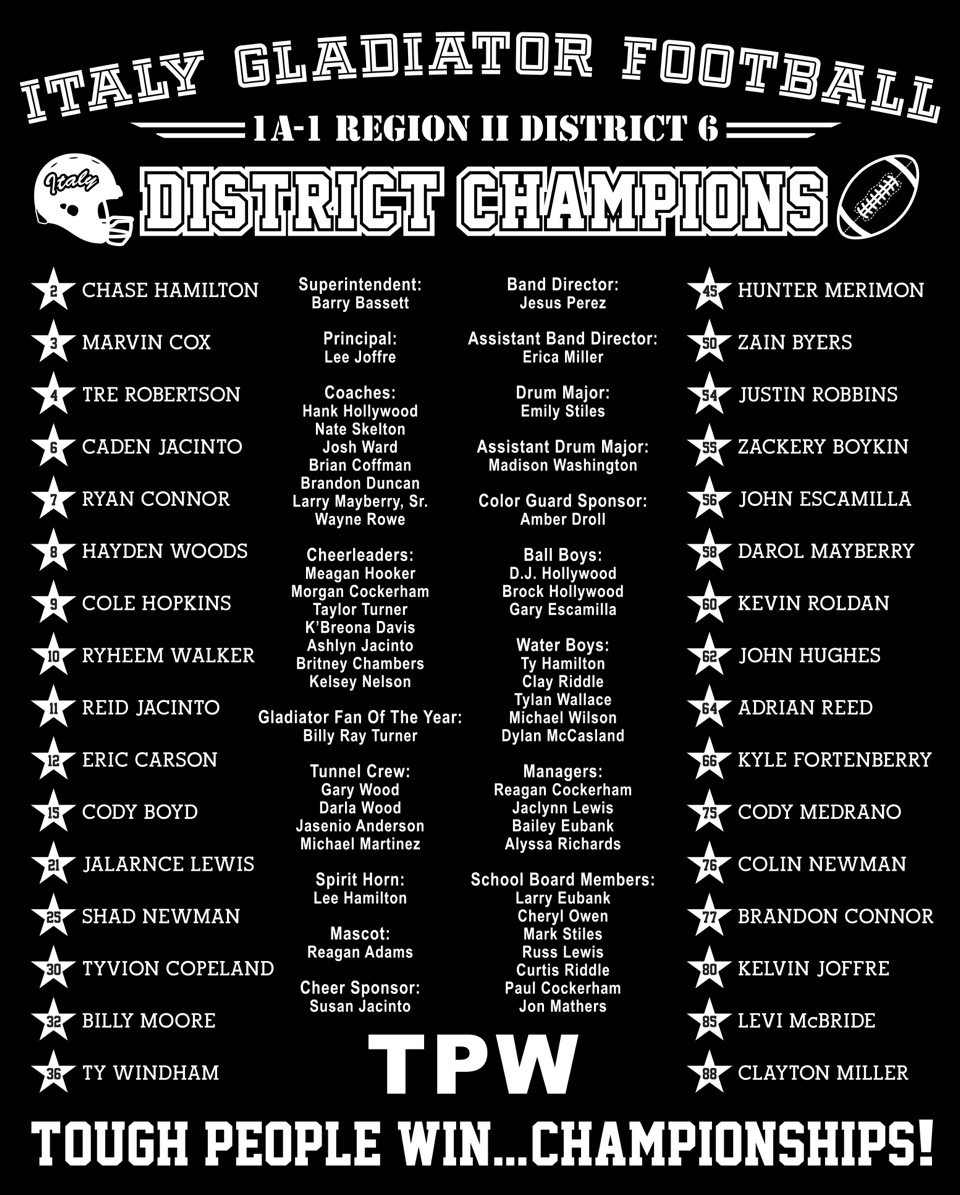 Order your 2012 Gladiator Football playoff shirt NOW « previous story album next » Back Design (Barry Byers) Download original photo