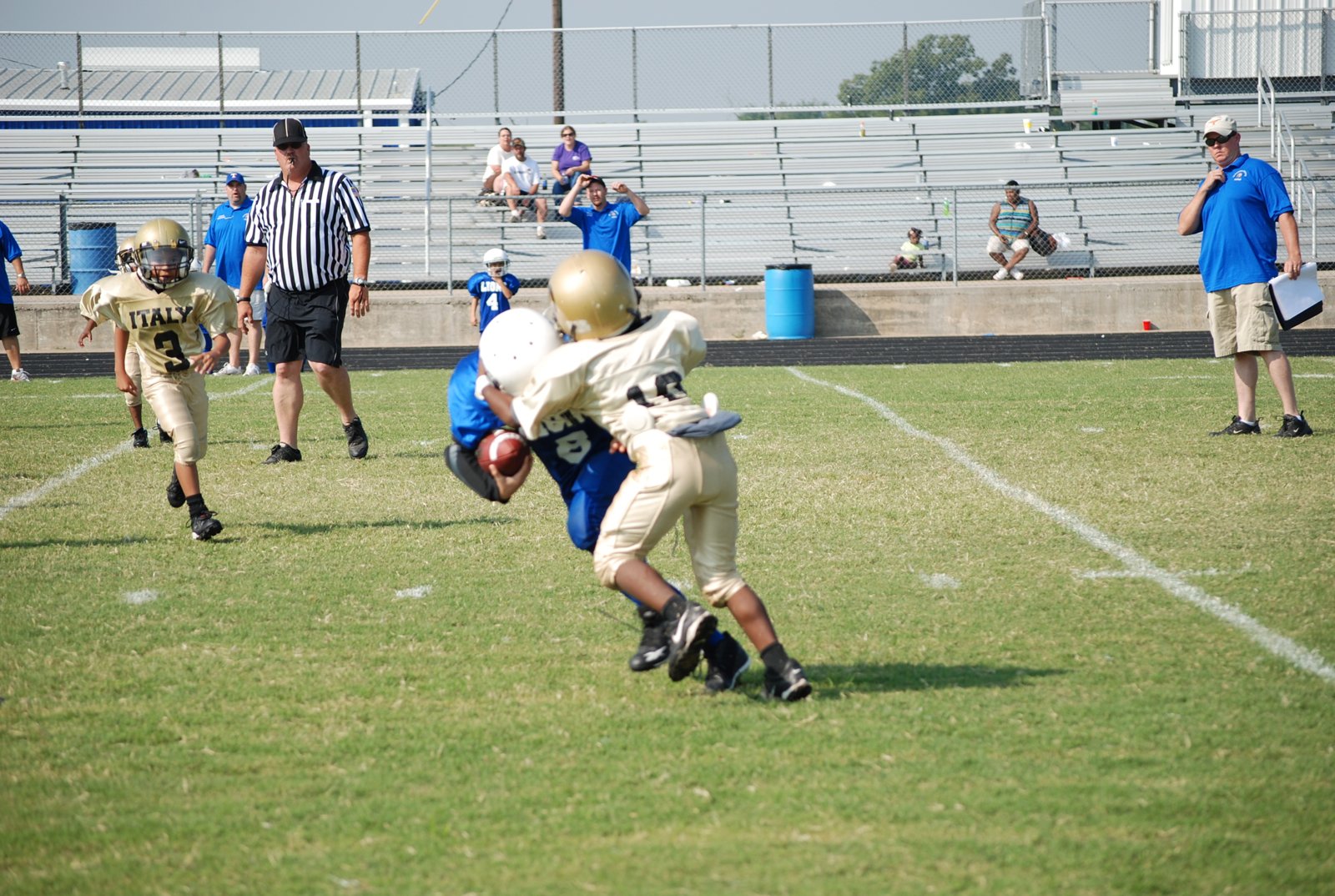 IYAA Gladiators play hard at Blooming Grove « previous story album next » One on one tackle — Italy defense prevented the Lions from scoring more than once. (Christina Esselman) Download original photo
