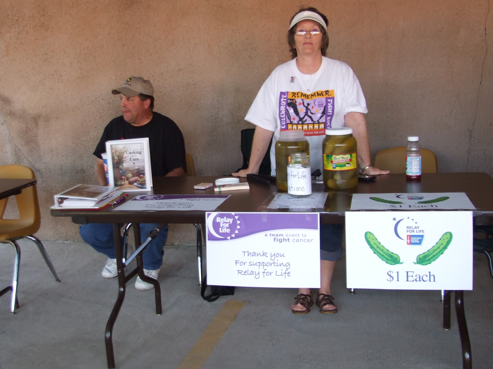 Milford National Night Out « previous story album next » Pickle booth — This booth was selling pickles and cookbooks for Relay for Life. Karen Mathiowetz and her husband Brian. (Cindy Sutherland) Download original photo