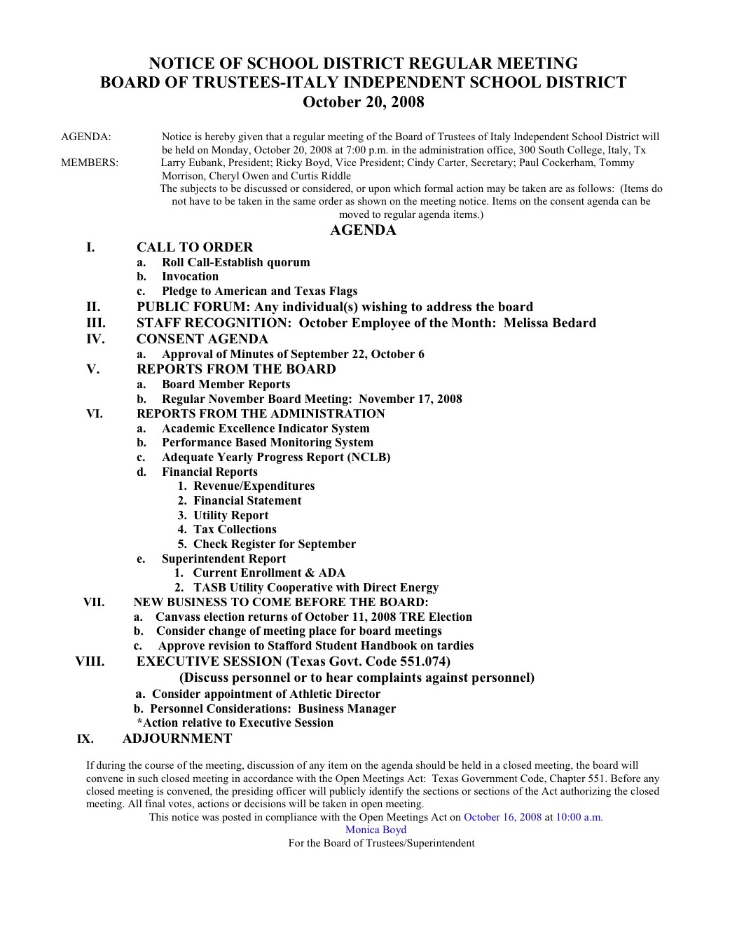 Italy ISD to review FIRST rating and TRE results « previous story album next » Italy ISD meeting agenda (Italy ISD) Download original photo