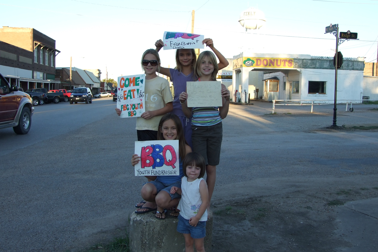 Italy First Baptist Church fundraiser « previous story album next » The call for BBQ — (L-R)Britney Chambers, Cassidy Svelak, Halee Turner and Josie Perkins. Bottom is future youth member, Morgan Chambers (Anne Sutherland) Download original photo