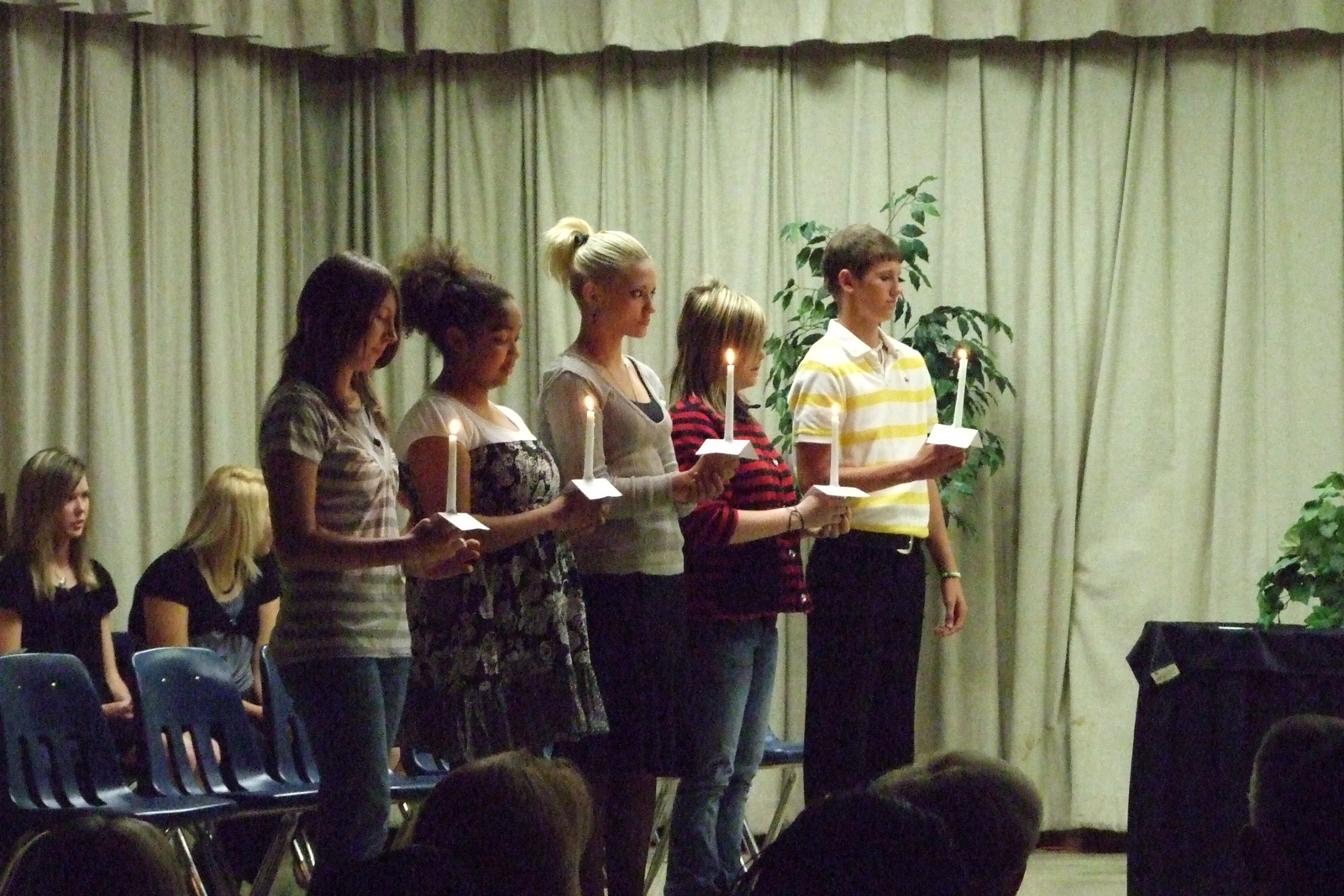 National Junior Honor Society induction ceremony « previous story album next » Outgoing officers — (L-R) President — Holli Love, Vice President — Destani Anderson, Secretary — Bianca Evans, Treasurer — Heather Hilliard and Reporter — Jase Holden. (Anne Sutherland) Download original photo