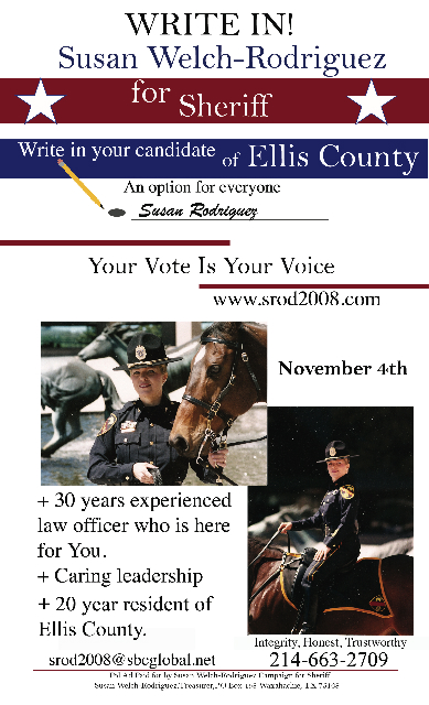 Susan Welch-Rodriguez for Sheriff « previous story album next » Campaign flyer (Submitted image) Download original photo