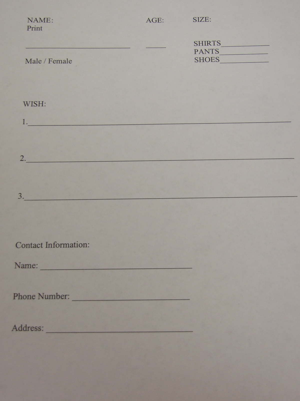 Milford Angel Tree « previous story album next » Angel contact form — This form needs to filled out for each Angel. (Cindy Sutherland) Download original photo