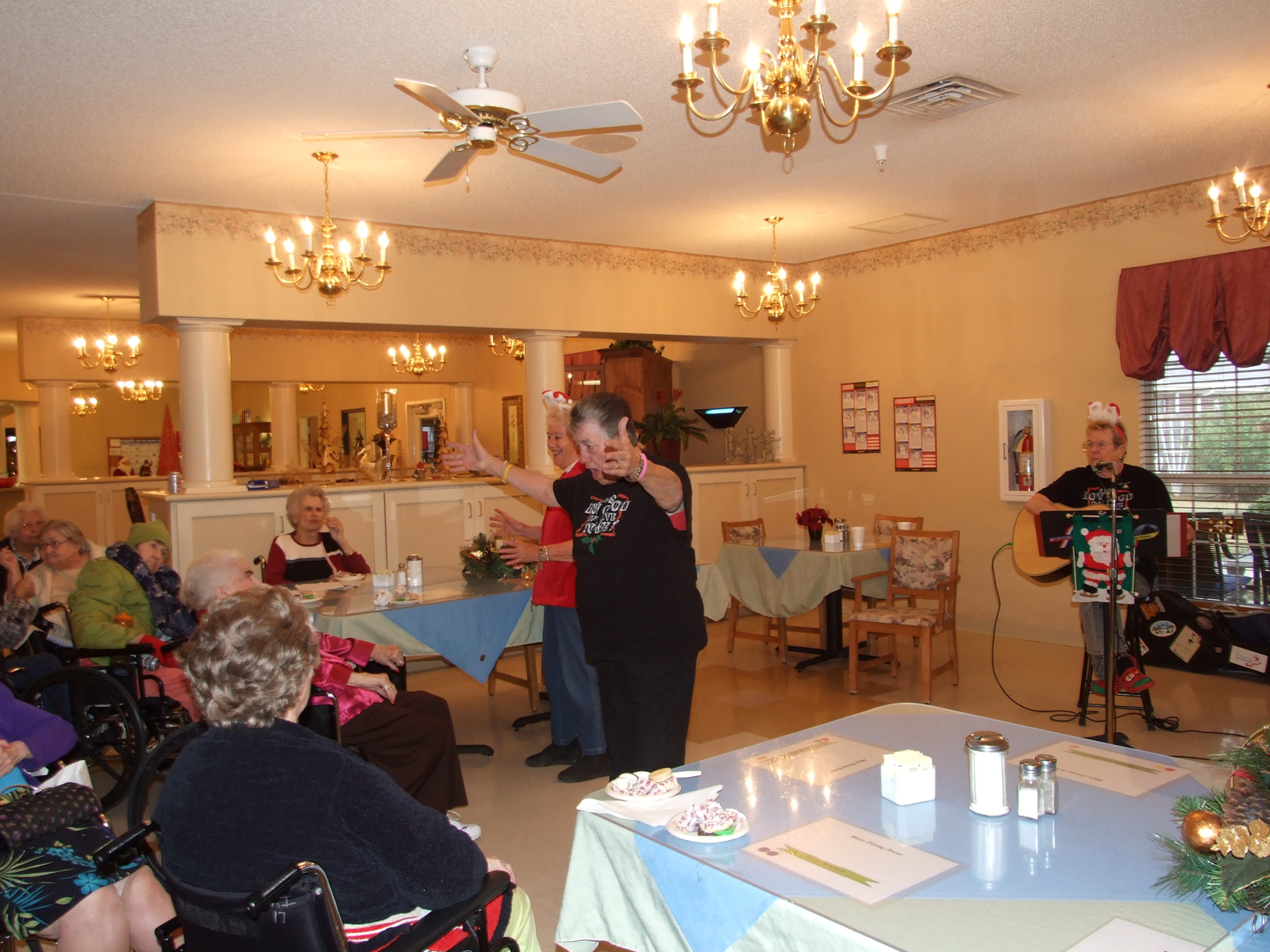Bobbie and Sue celebrate Christmas at Trinity Mission « previous story album next » Bobbie directs the singing — Bobbie is helping residents sing Christmas songs. (Cindy Sutherland) Download original photo