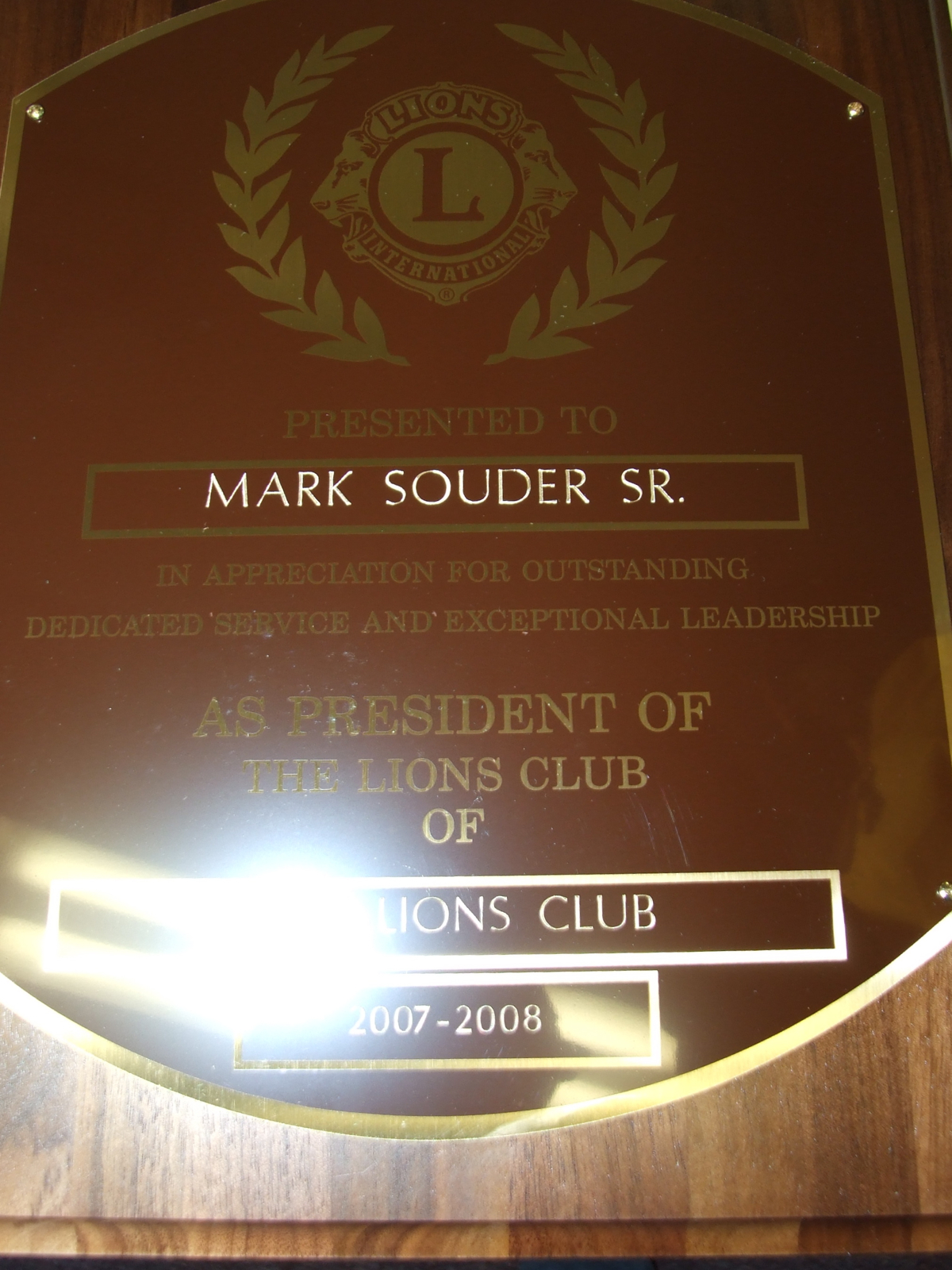 Mark Souder honored by Italy Lions Club « previous story album next » The Plaque of Appreciation (Cindy Sutherland) Download original photo