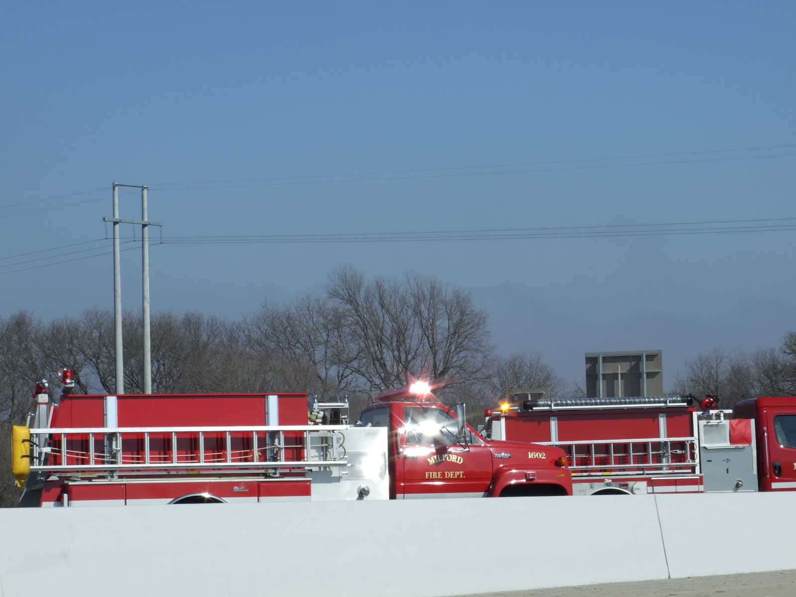 Where did that car go? « previous story album next » Milford Fire Trucks — Milford fire trucks were on the scene ready to help. (Cindy Sutherland) Download original photo