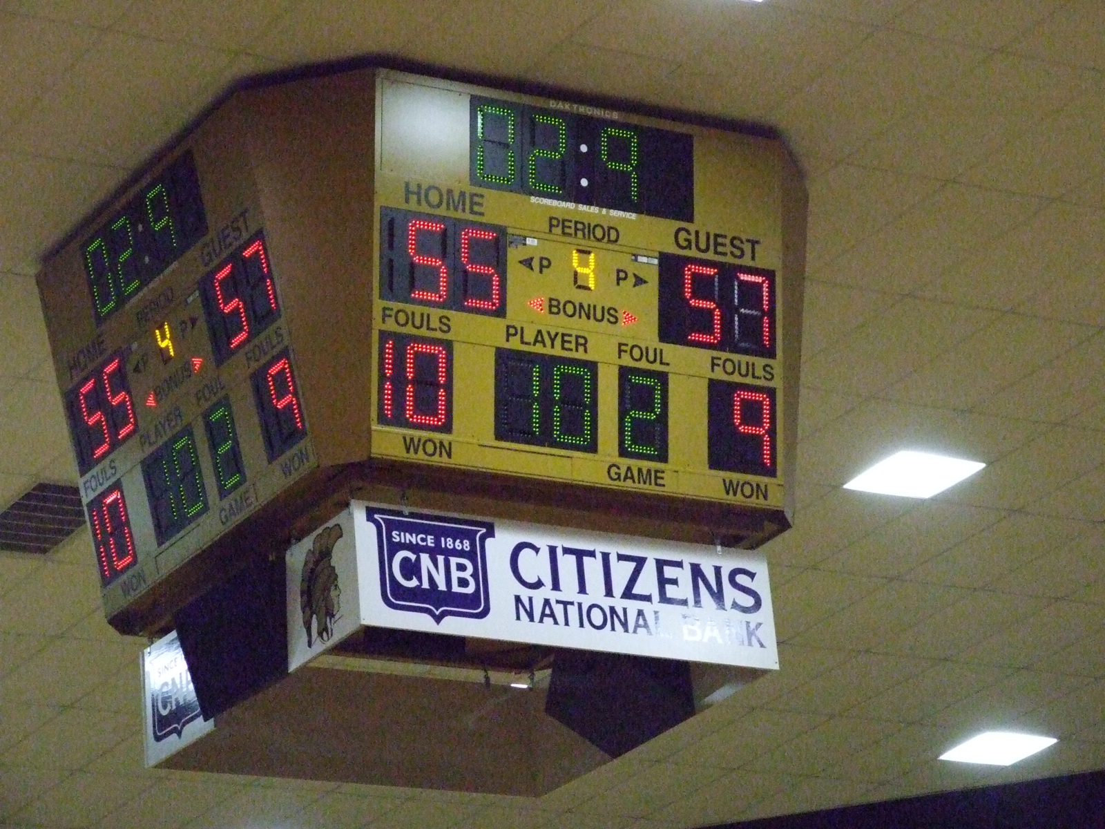 The official scorecard — This is what the Italy Gladiators had to look up at and read near the end of the game against Dallas Gateway. Italy accomplished several moves in the final 2.9 but were unable to deliver the knockout 3-point shot. (Anne Sutherland)