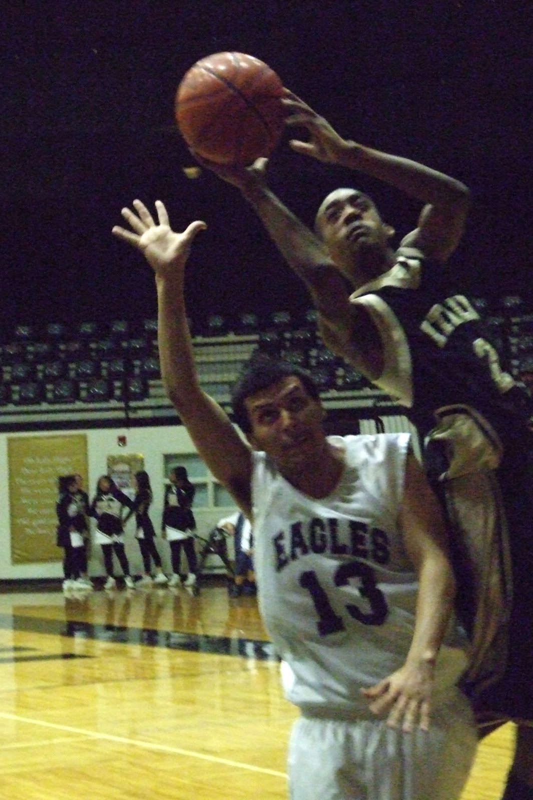 Heath leans in — Leaning in for a shot attempt is Italy’s #2 Heath Clemons who scored 12-points while taking over point guard duties for Jasenio Anderson who was out with a sprained ankle. (Barry Byers)