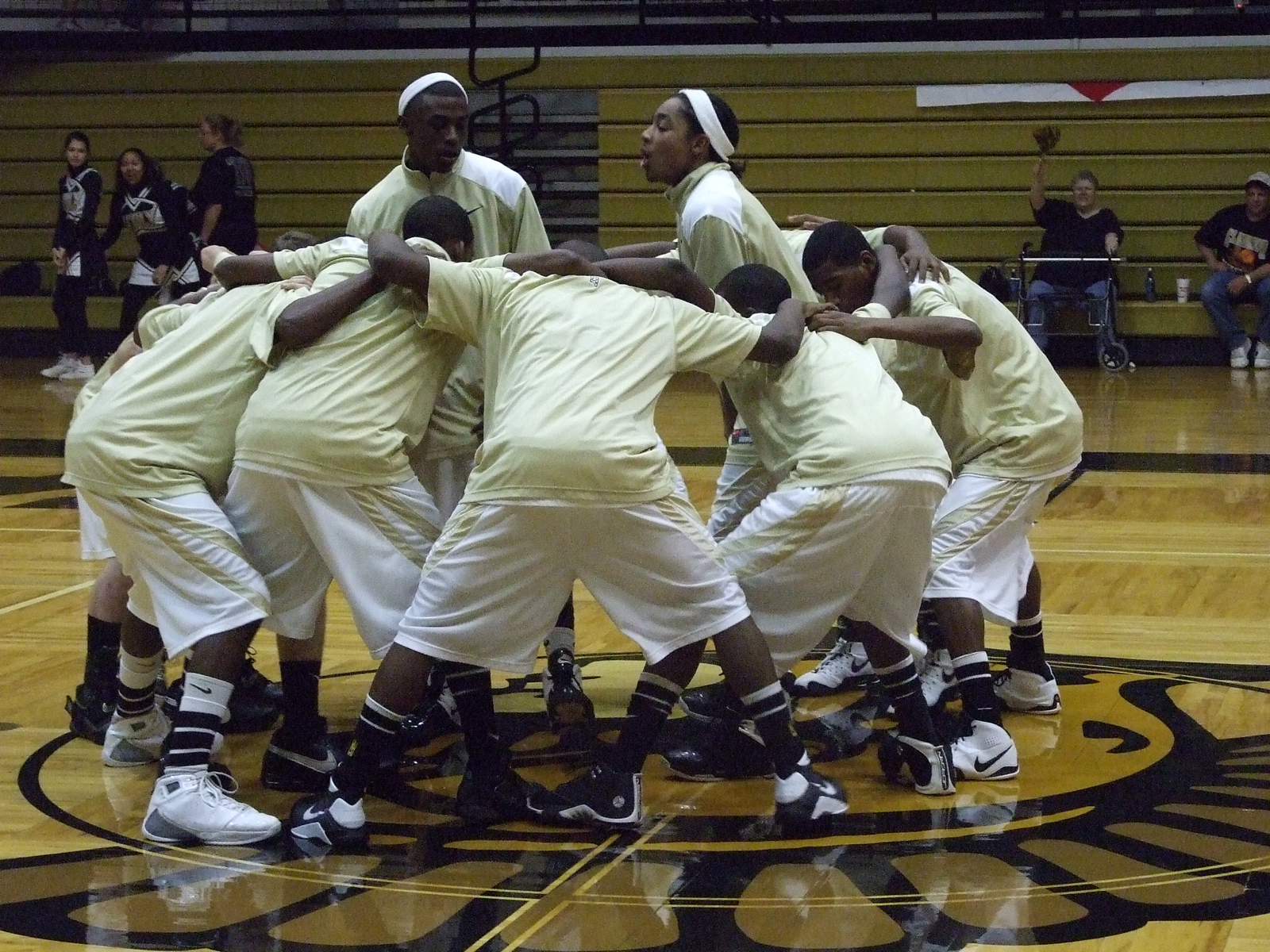 Italy performs their pregame ritual — The Italy Gladiators were hoping for a better outcome against Itasca but with a slowed Jasenio Anderson and a fired up group of Itasca Wampus Cats, it turned into a long, cold shooting night for our hometown heroes. (Anne Sutherland)