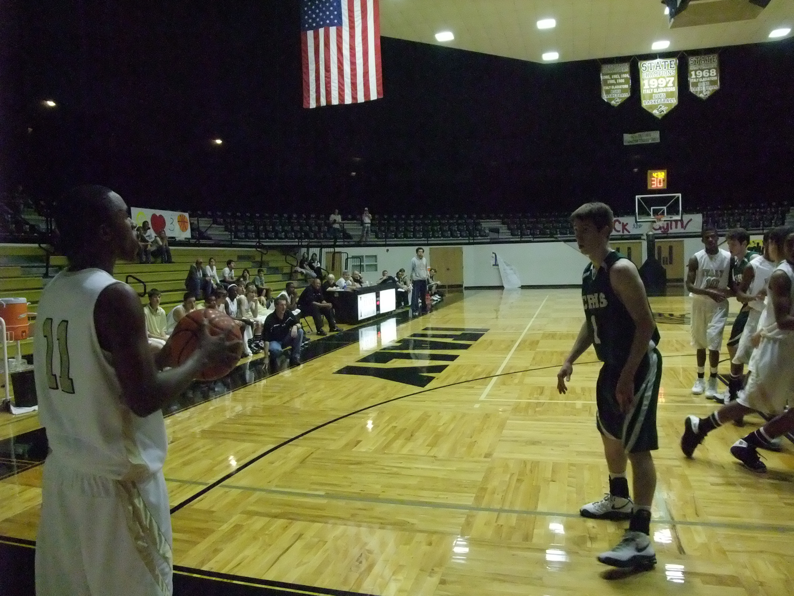 Gladiators come to a Crossroads before Playoffs « previous story album next » Jasenio Inbounds — Jasenio Anderson #11 tries to inbound to a fellow Gladiator. (Barry Byers) Download original photo