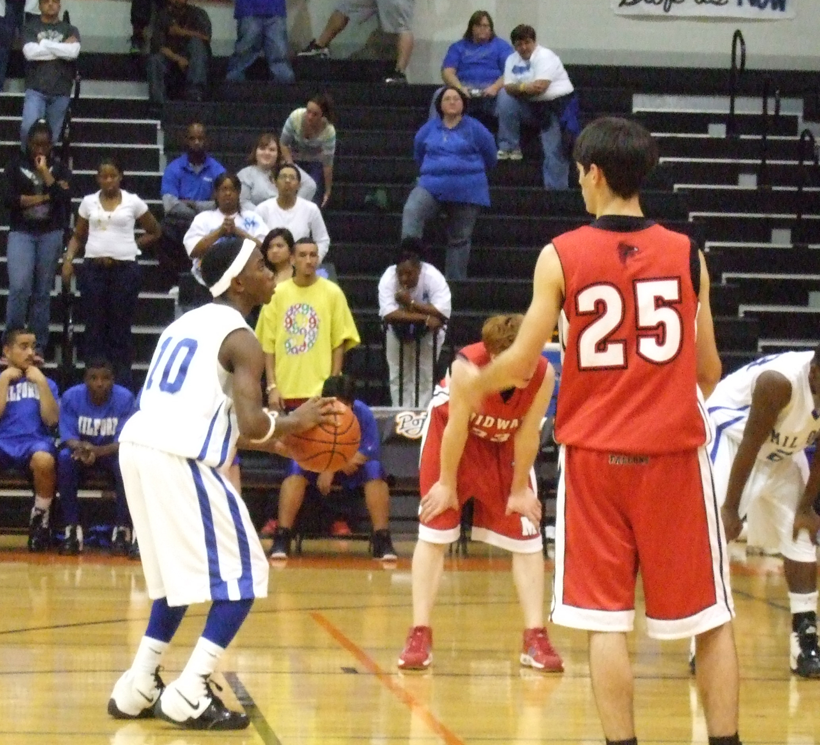 Milford Bulldogs win Area Championship « previous story album next » Davis delivers — Milford’s #10 Davis helped seal the deal against the Midway Falcons as the “Boys in Blue” hit 8-of-12 free-throws from the line in the fourth quarter. (Nichole Galvan) Download original photo