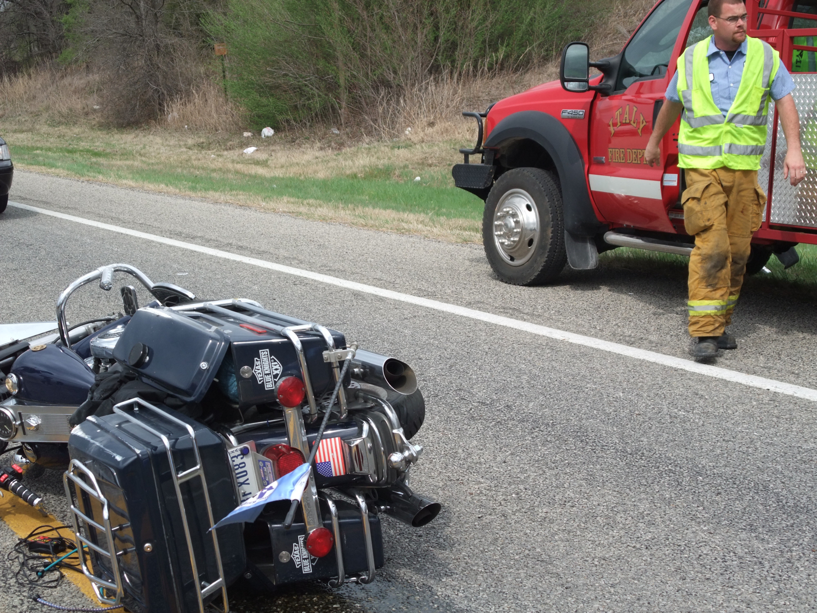 AirEvac responds to motorcycle accident « previous story album next » Wreckage — Italy Fire personnel start the investigation. (Barry Byers) Download original photo