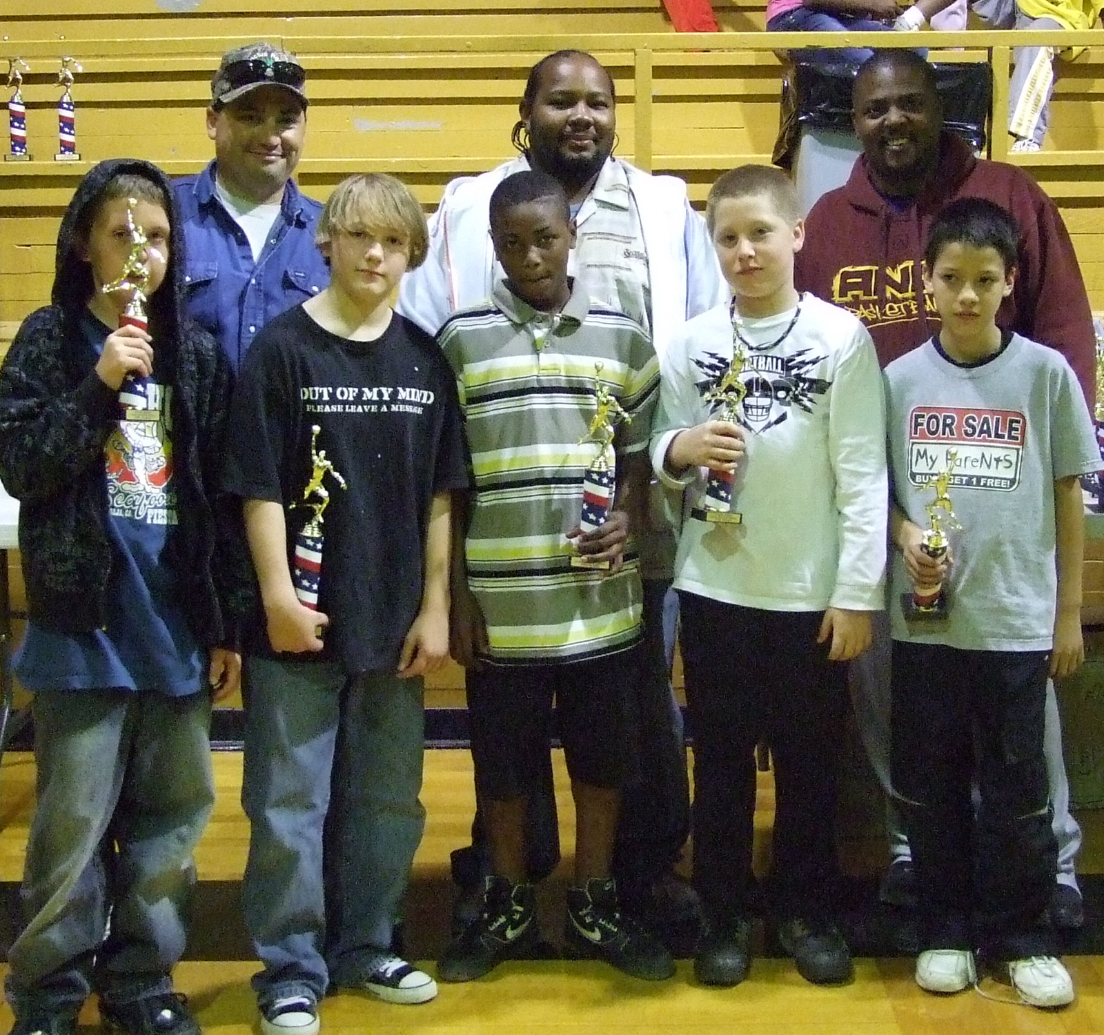 IYAA Hosts Basketball Bash « previous story album next » Team Walker — Head Coach Shedrick Walker, Asst. Glen McLendon and IYAA President Jason Escamilla are proud of their team as they accept their trophies. (Anne Sutherland) Download original photo