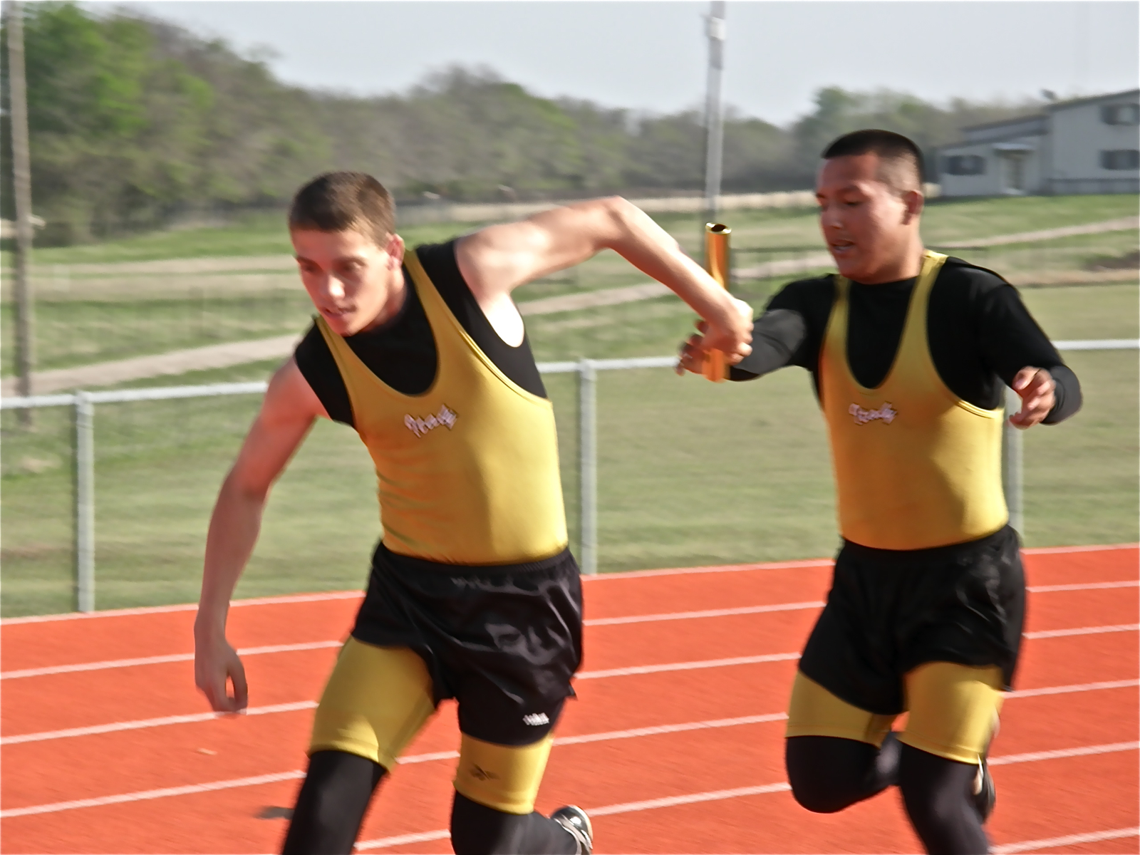 Image: Souder takes off — Brandon Souder takes the stick from Jacob Lopez.