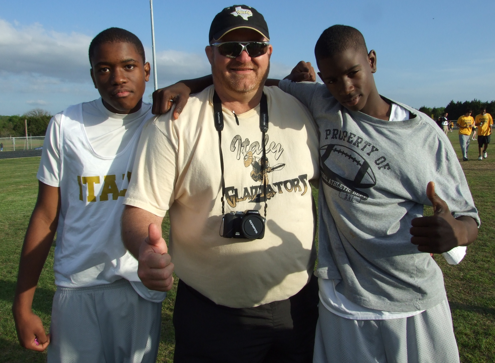 IJH competes at District track meet « previous story album next » Thumbs up — Paul Harris, Coach Sollers and Tyvion Copeland are proud of the Junior High track team’s accomplishments at the District meet in Hubbard. (Barry Byers) Download original photo