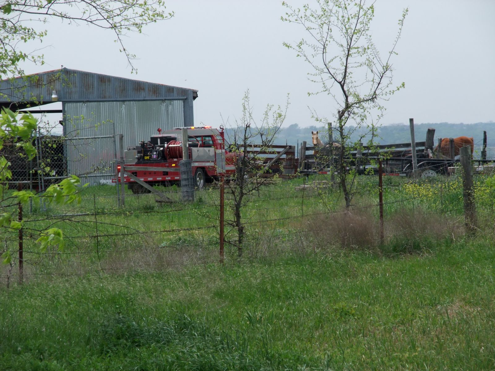 Italy’s Brush 1 fire engine respond to a grass fire — The grass fire was no match for Italy’s Brush 1 fire engine but this locked gate proved to be a formidable foe as the Italy Fire Department had yet to land a blow against the blaze. (Barry Byers)