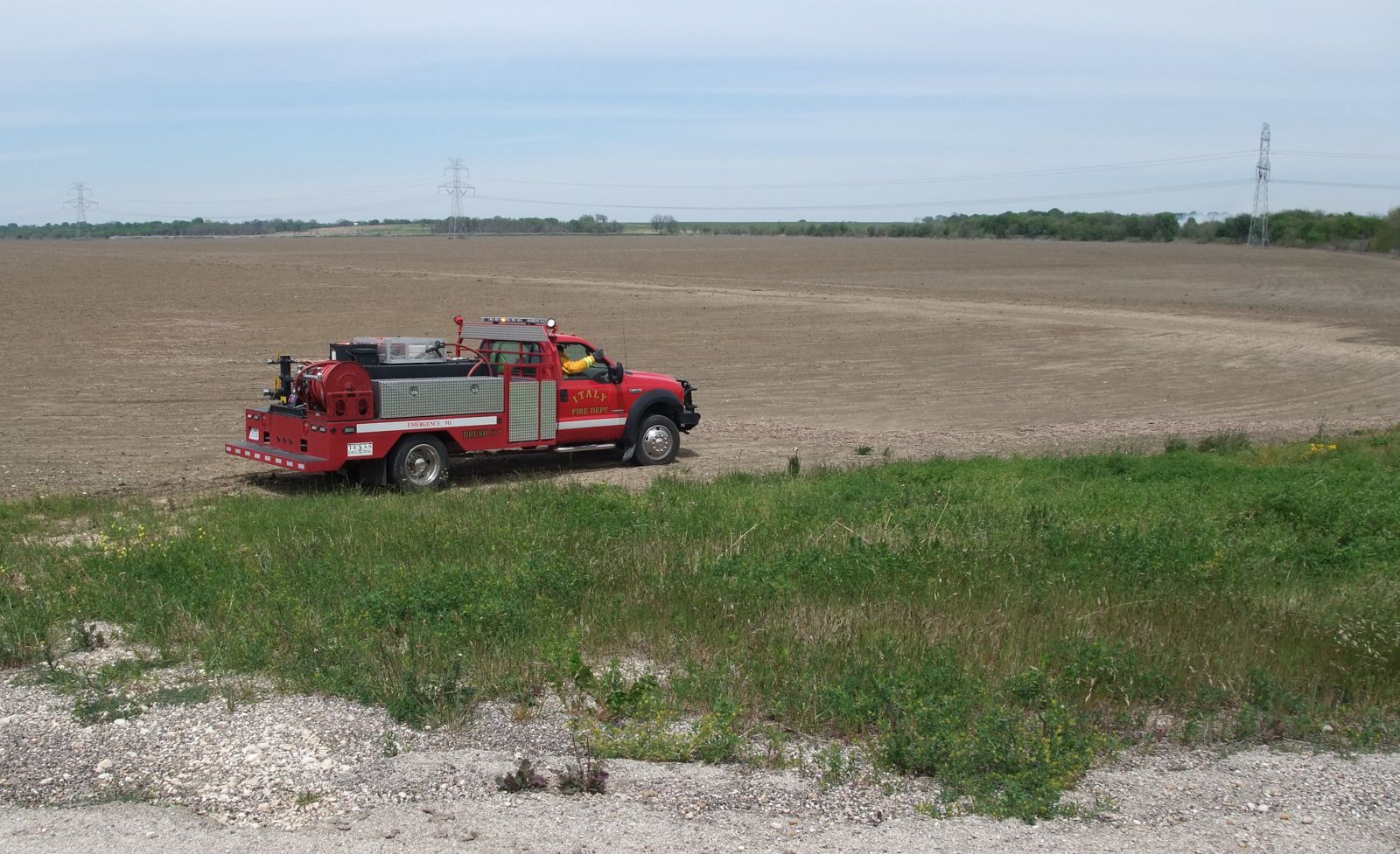 Grass fire no match for area firefighters « previous story album next » Answering the bell — The Italy Brush 1 fire engine heads toward the source of the smoke. (Barry Byers) Download original photo