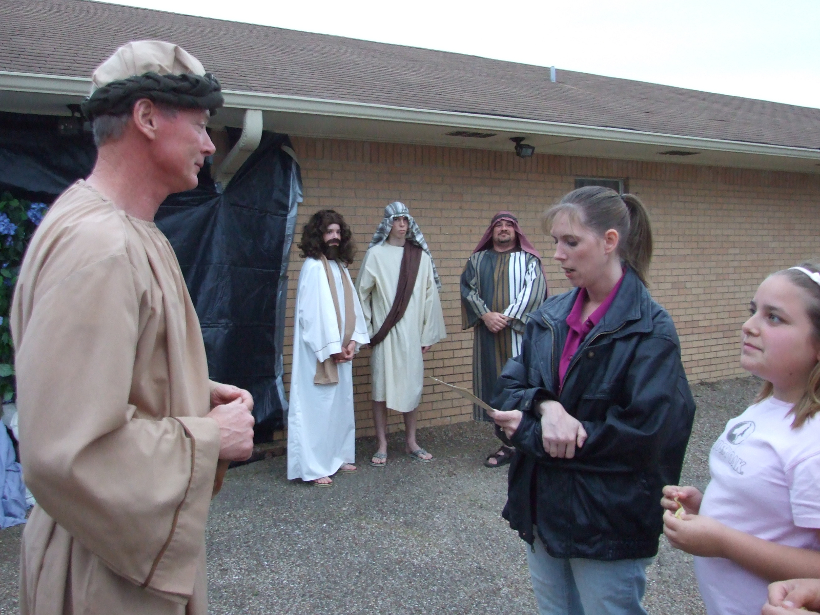 “All Heaven and Earth” Easter Production « previous story album next » Entering Bethlehem — The guide is asking the master of ceremonies, “which way do we go?” (Cindy Sutherland) Download original photo