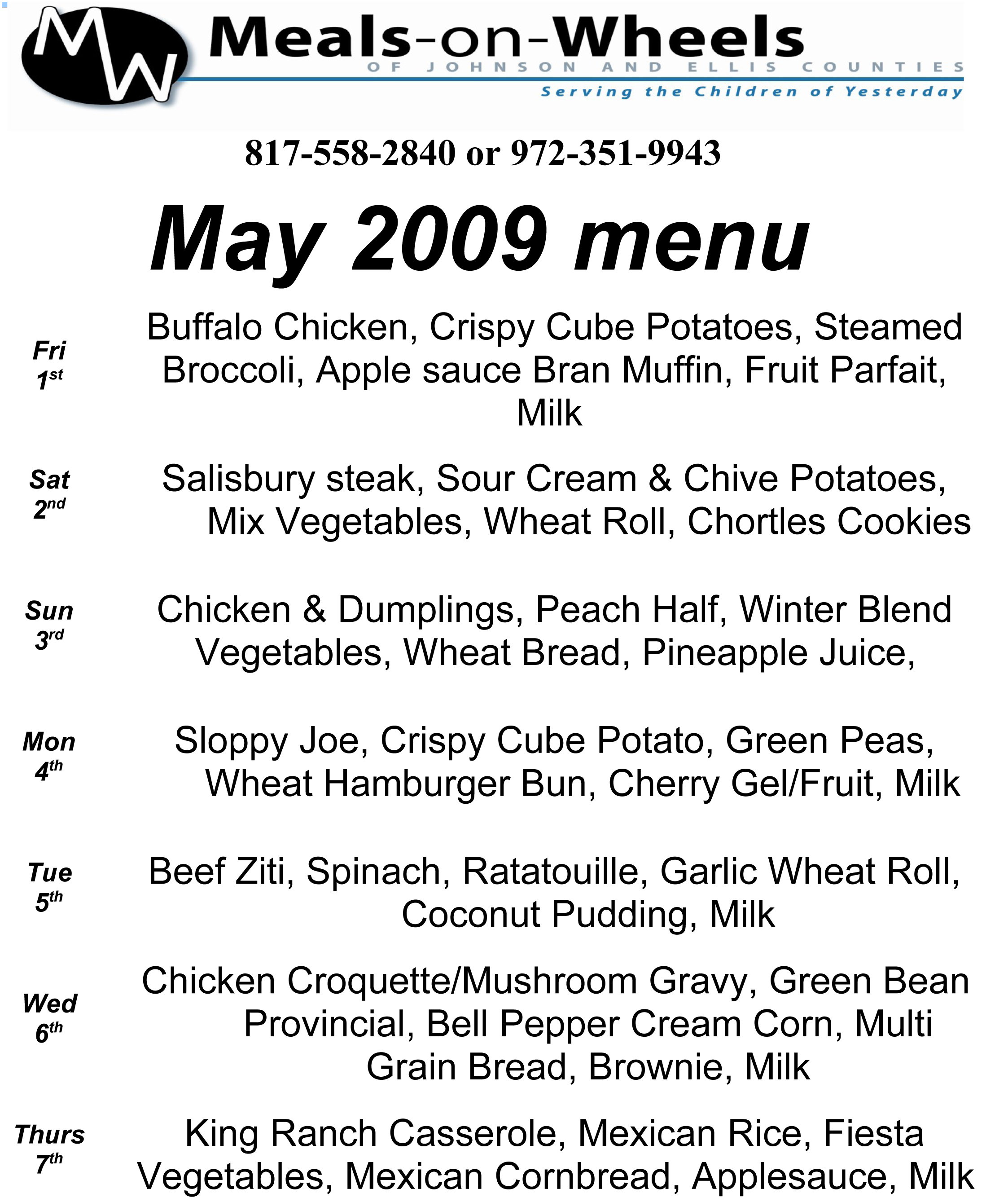 Meals-on-Wheels’ May Menus « previous story album next » May Meals-on-Wheels meal menu calendar Download original photo