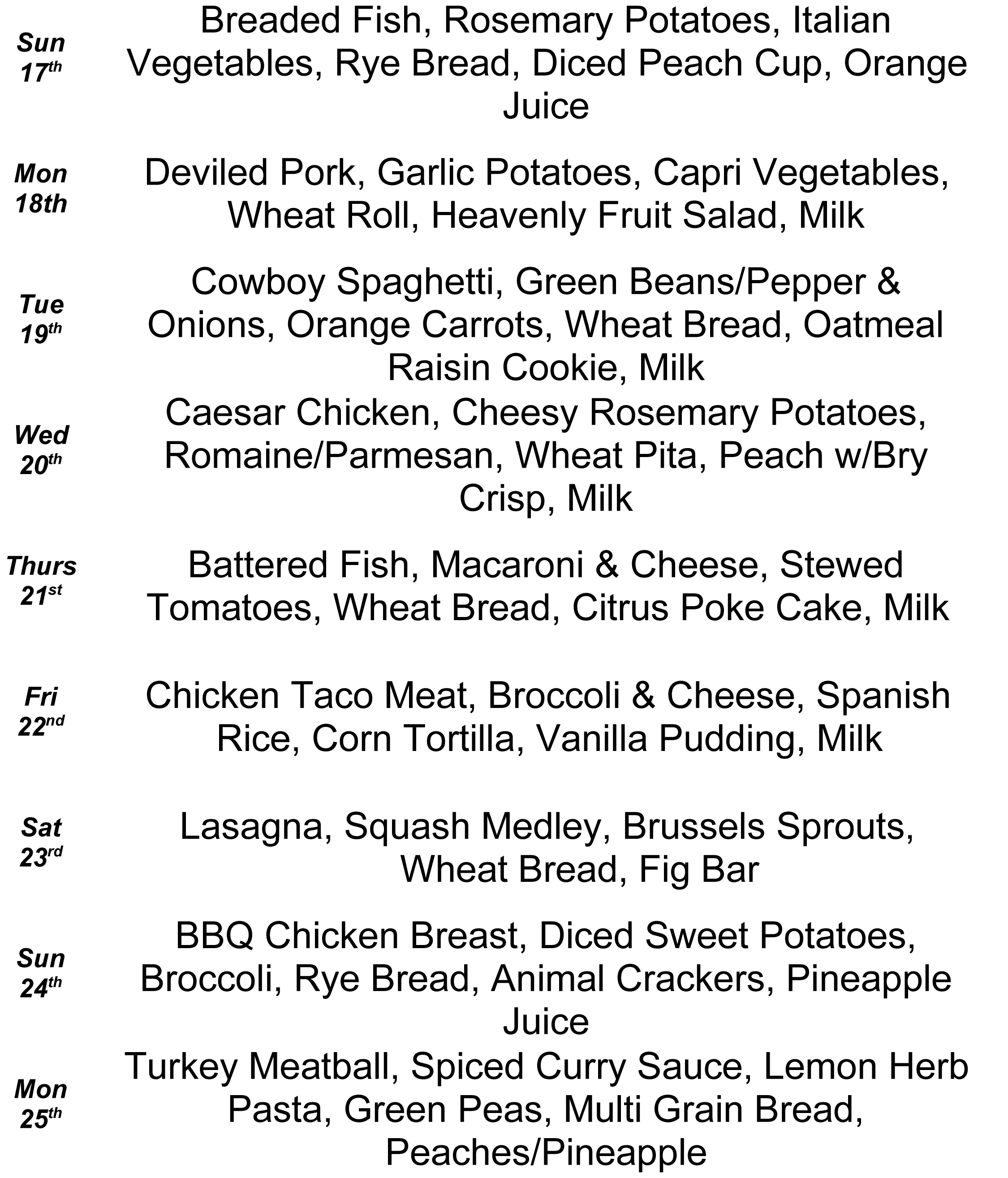 Meals-on-Wheels’ May Menus