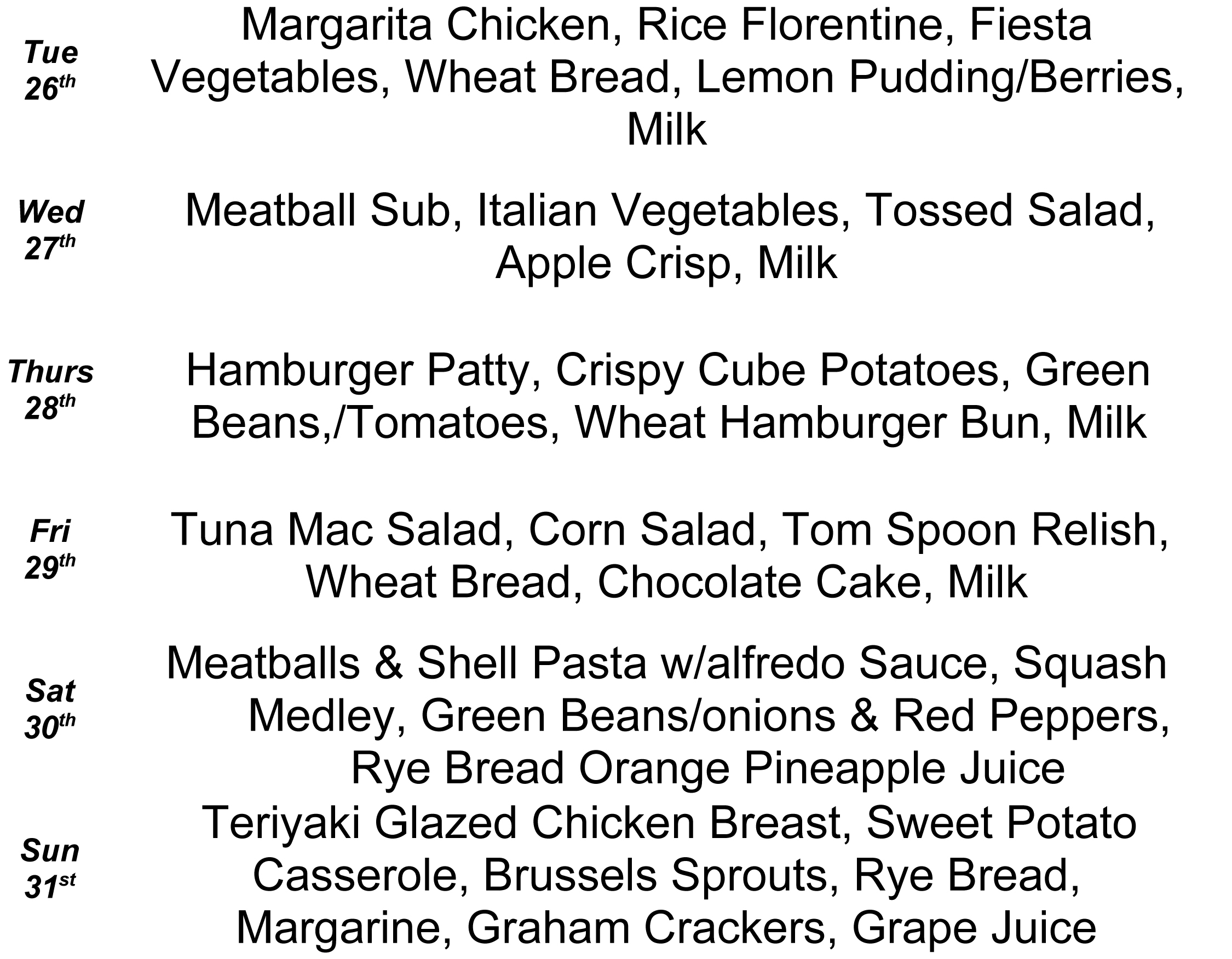 Meals-on-Wheels’ May Menus