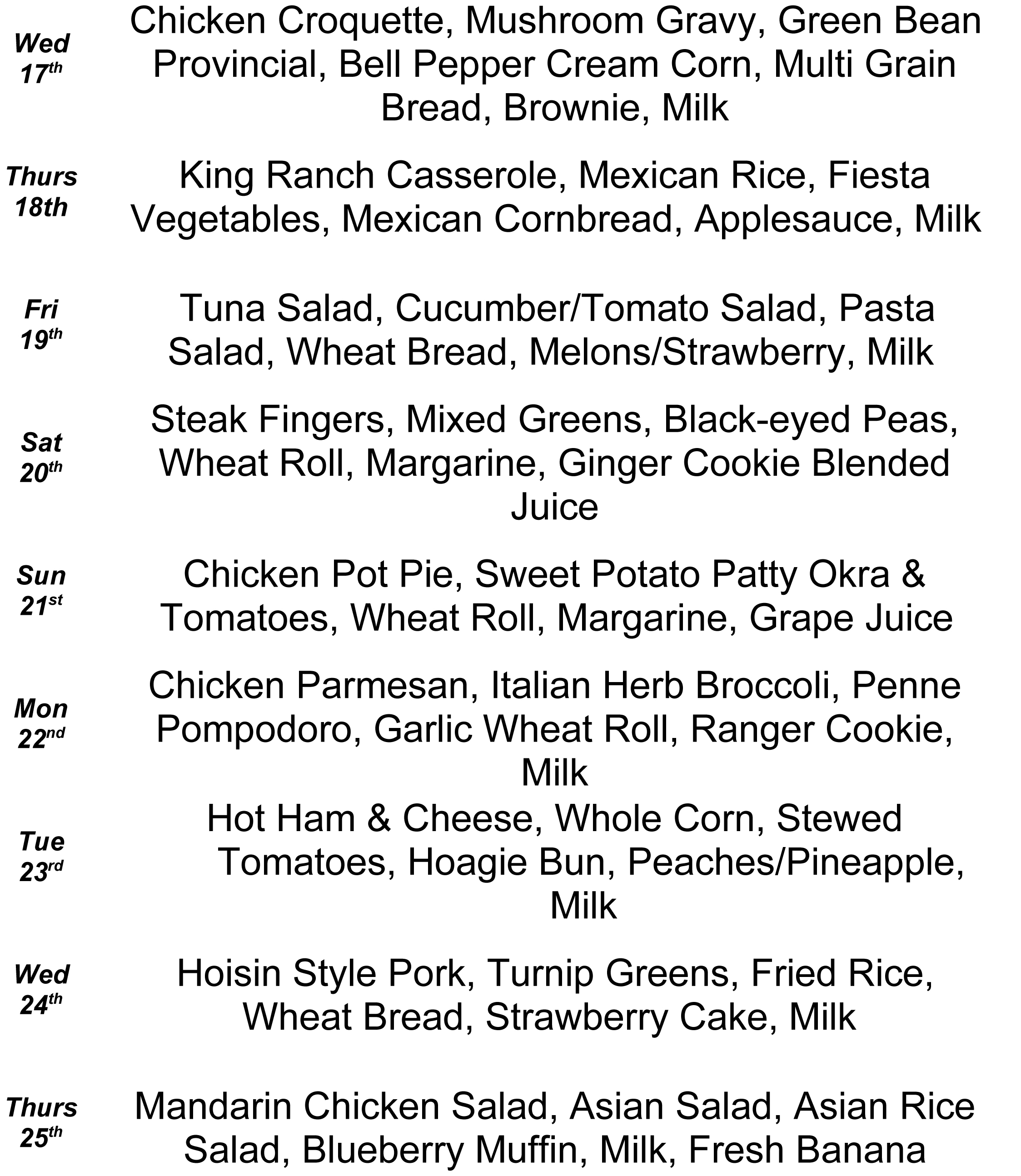 Meals-on-Wheels’ June Menus