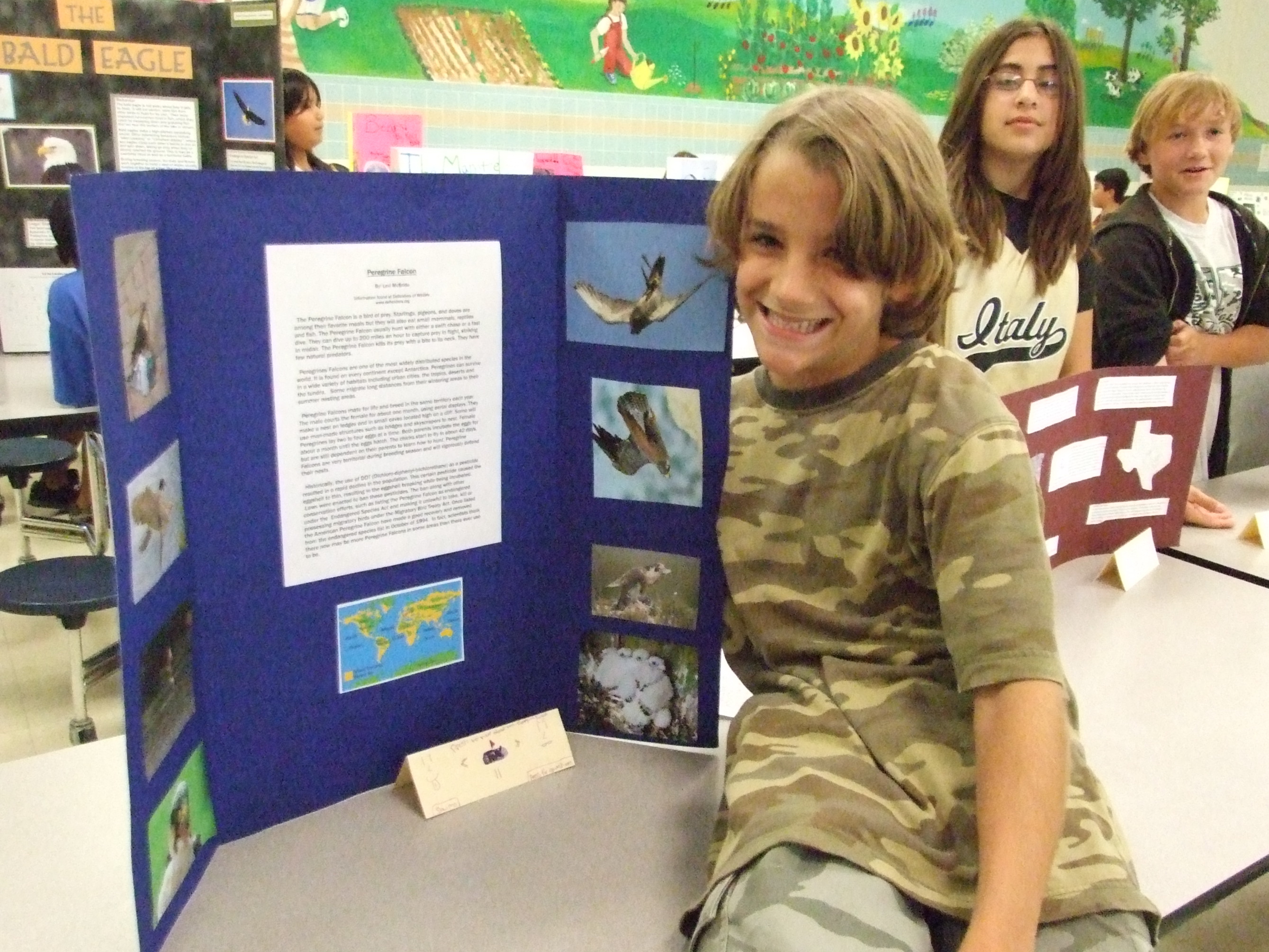Levi McBride — Levi did his project on the Parigren Falcon. He said, “I learned that it is the fastest bird in the world. It can fly 200 miles per hour. They are about 15 to 20 inches long. They eat other birds, ducks, reptiles and sometimes bats.” (Cindy Sutherland)