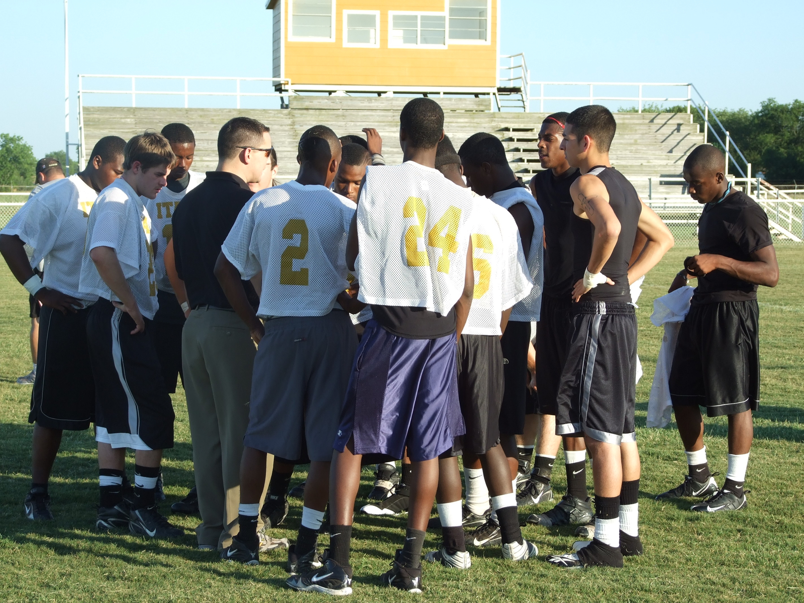 Varsity Football Players Having Fun « previous story album next » Coach Gray and his team — Summer league is only for this month but the team is bonding for the fall season. (Anne Sutherland) Download original photo