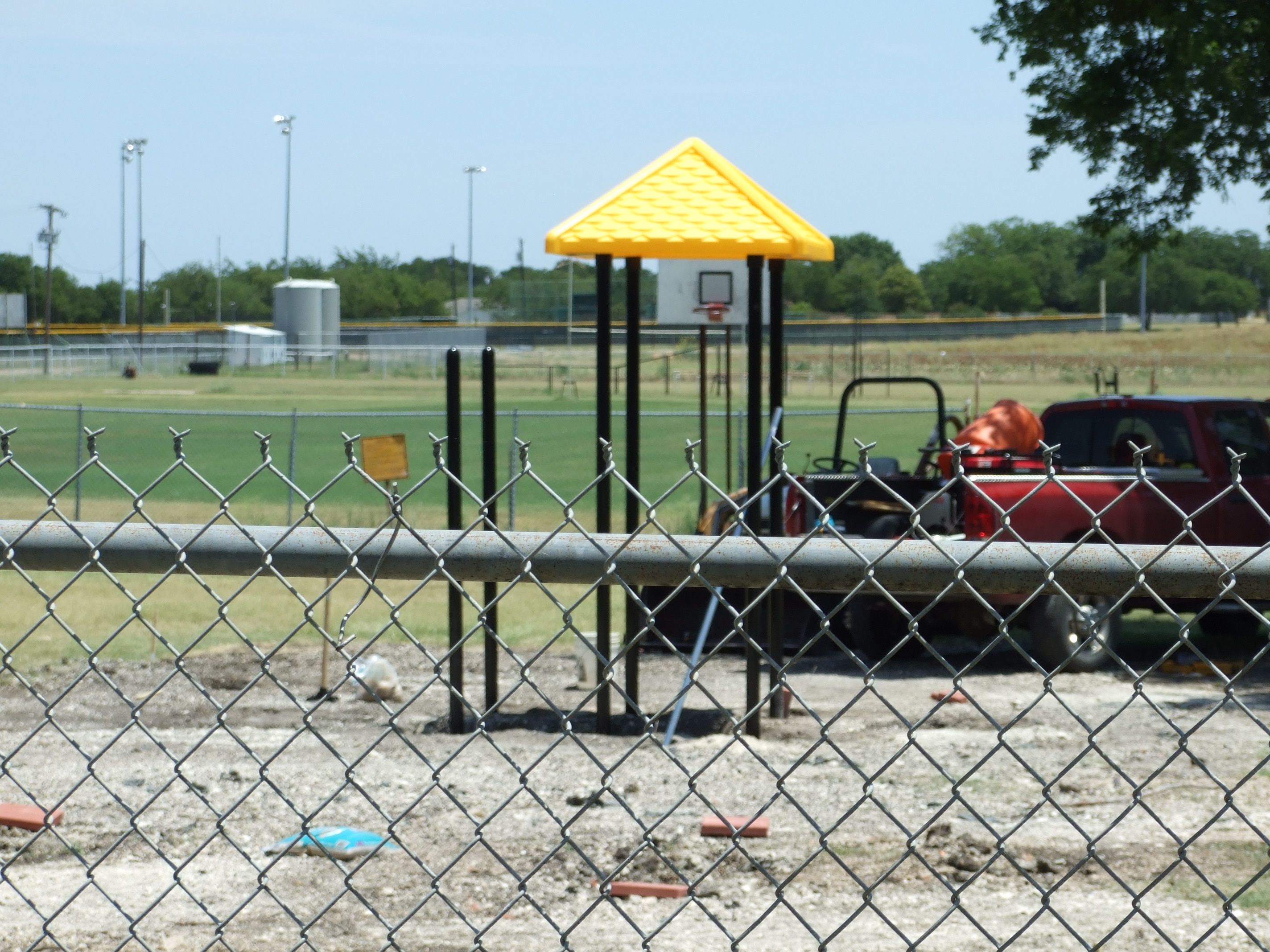 The new park equipment is being installed « previous story album next » Cemented Poles — The poles were being cemented in today at the park. (Cindy Sutherland) Download original photo