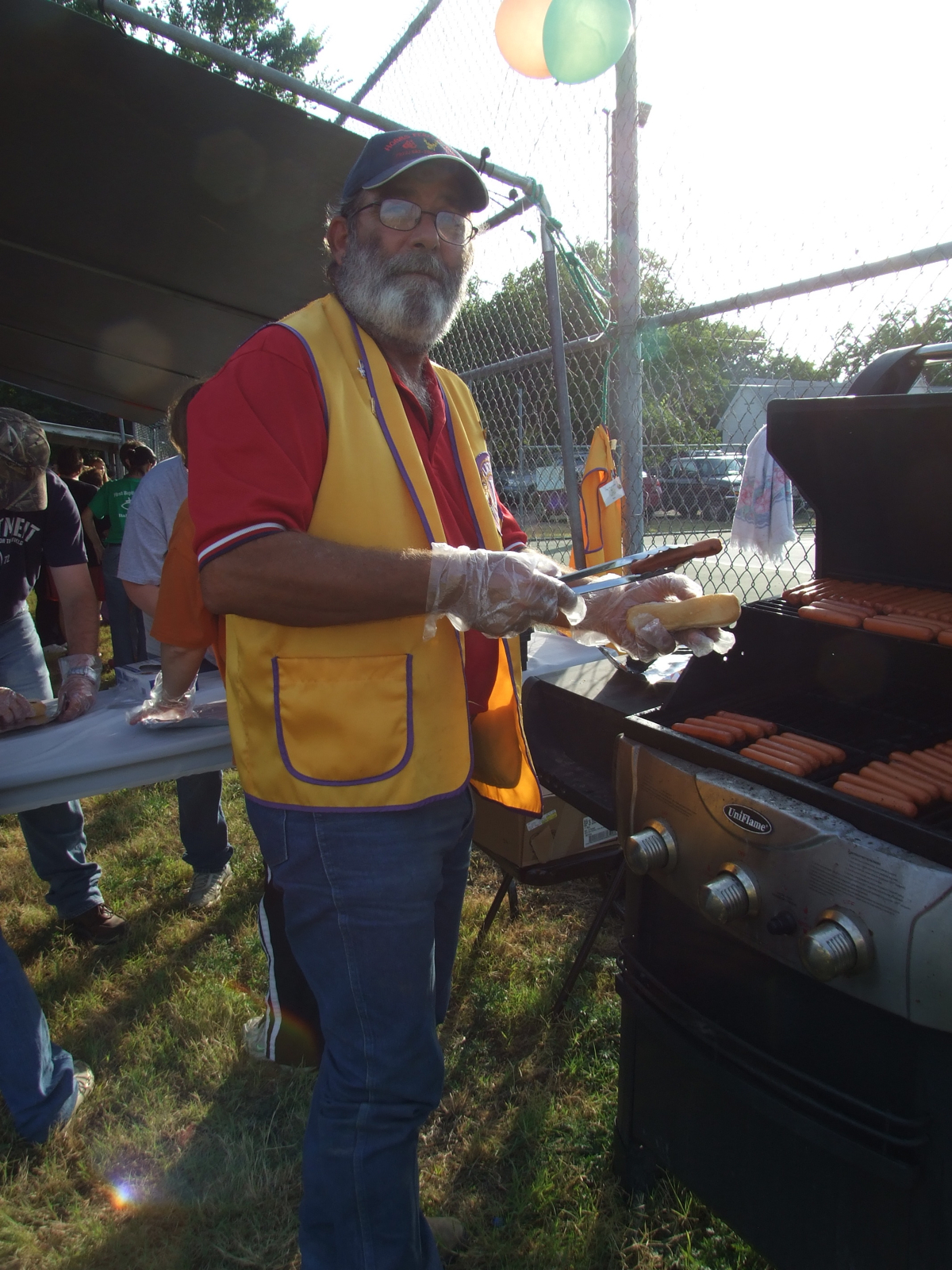 George Scott Memorial Park Grand Opening « previous story album next » Mark Souder — Lions Club member Mark Souder was busy grilling hot dogs for all. (Cindy Sutherland) Download original photo
