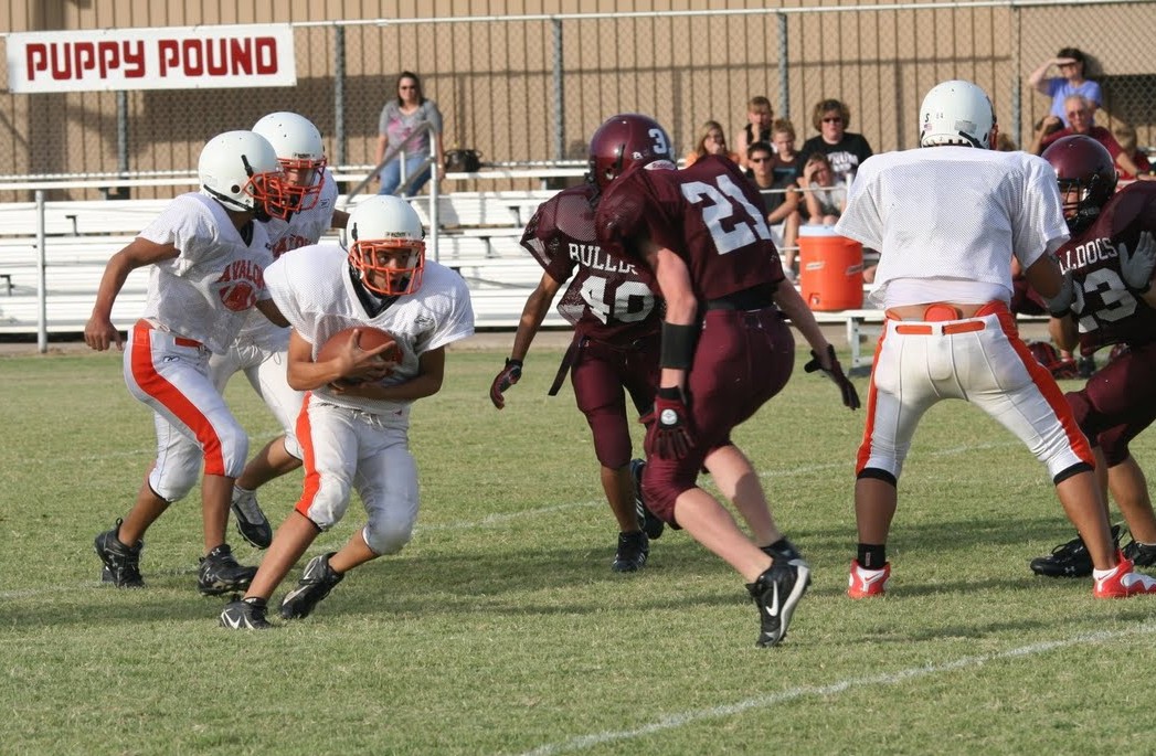 Avalon scrimmages Bynum in Six-Man Football « previous story album next » Juke and jive — This Eagle runner is looking for daylight. (Shelly Boswell) Download original photo
