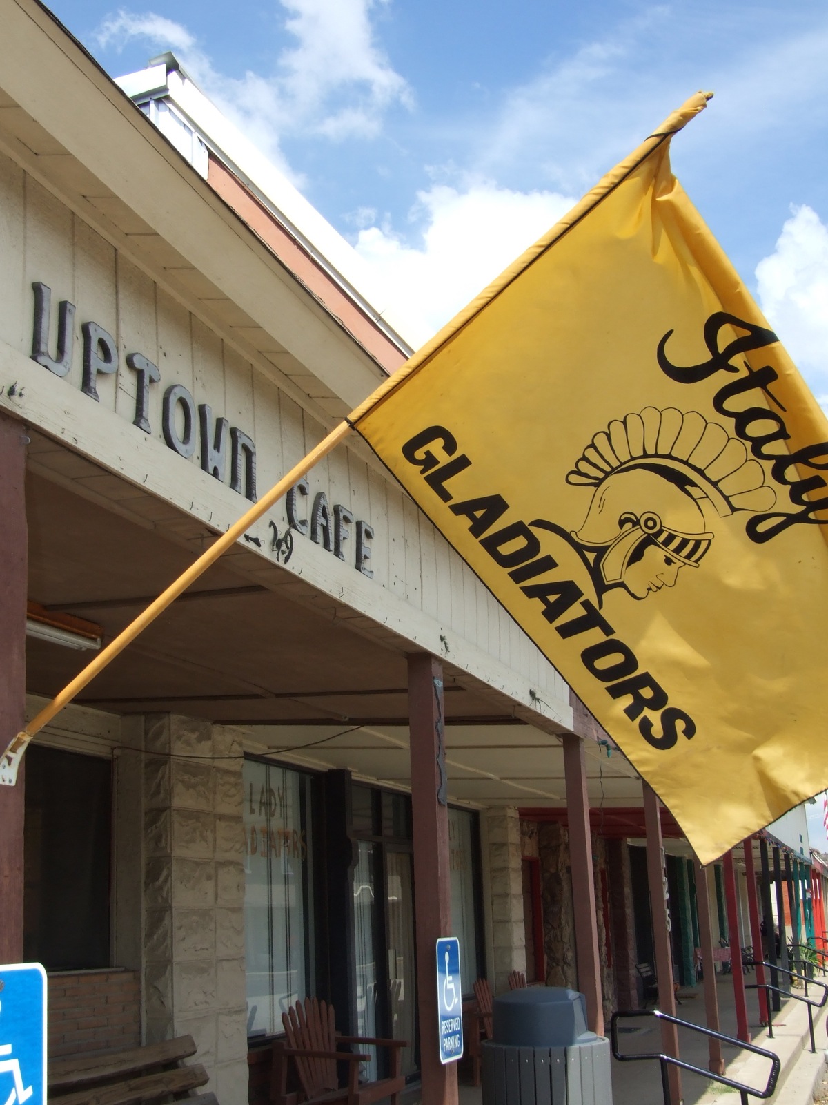 Italy JV wins season opener, Varsity enjoys Pep Rally « previous story album next » Chew ’um up! — Following tradition, the Varsity seniors meet at the Uptown Cafe in downtown Italy to have spaghetti before the game. (Barry Byers) Download original photo