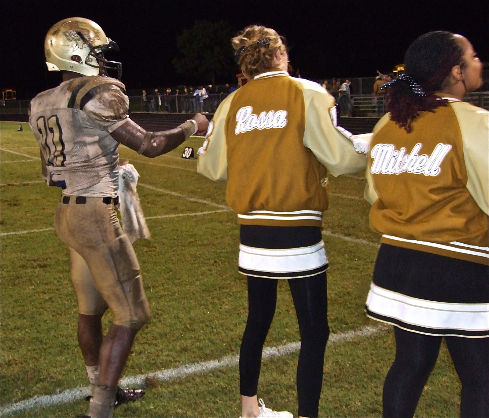Gladiators Stampede the Longhorns 13-0 « previous story album next » Pinky pride — Covered in mud but filled with pride, Jasenio Anderson takes time to hold Kaitlyn’s pinky during the school song. (Barry Byers) Download original photo