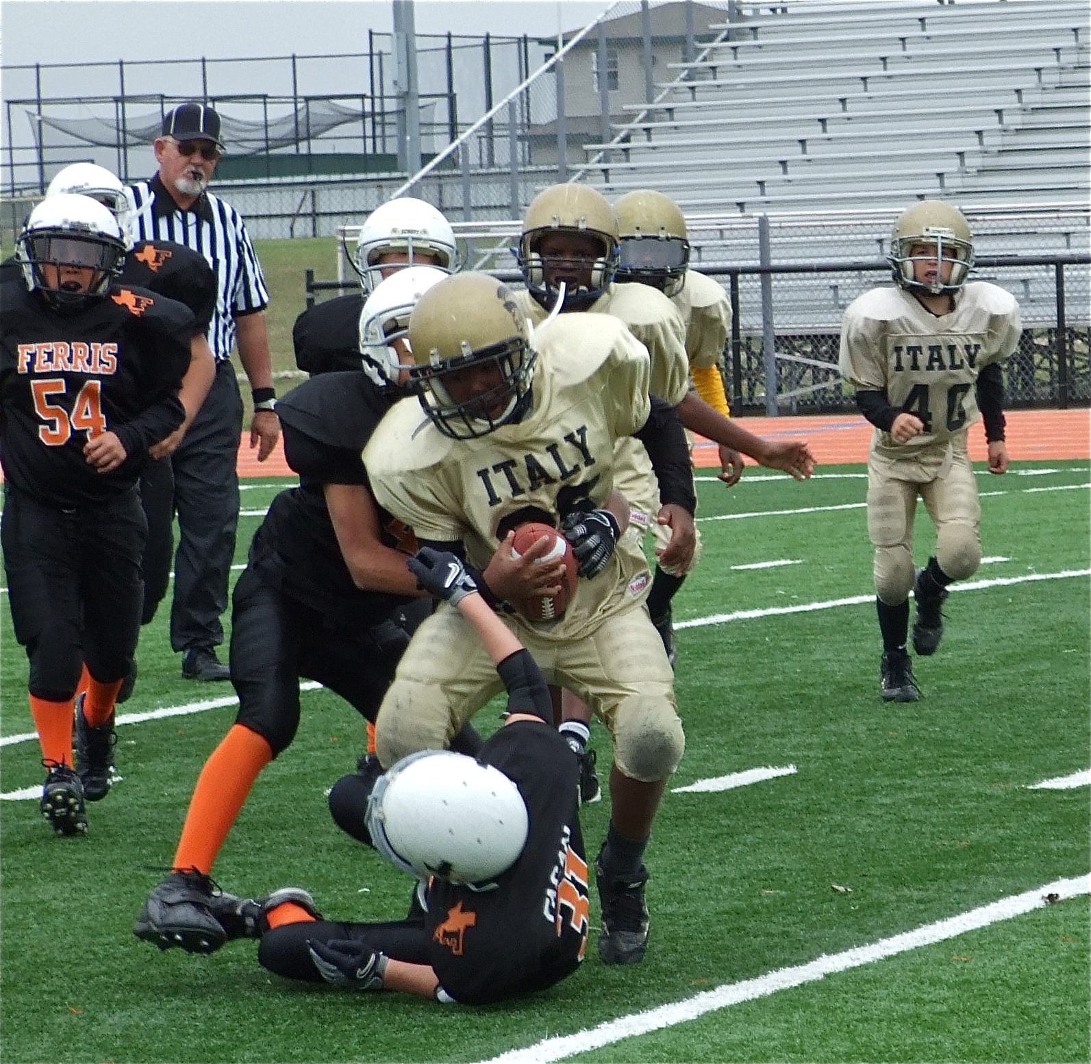 IYAA Gladiators win all three games against the Yellow Jackets « previous story album next » Ferris bites the turf — Ken “Krunch Time” Norwood, Jr. was to much to handle for Ferris. (Barry Byers) Download original photo