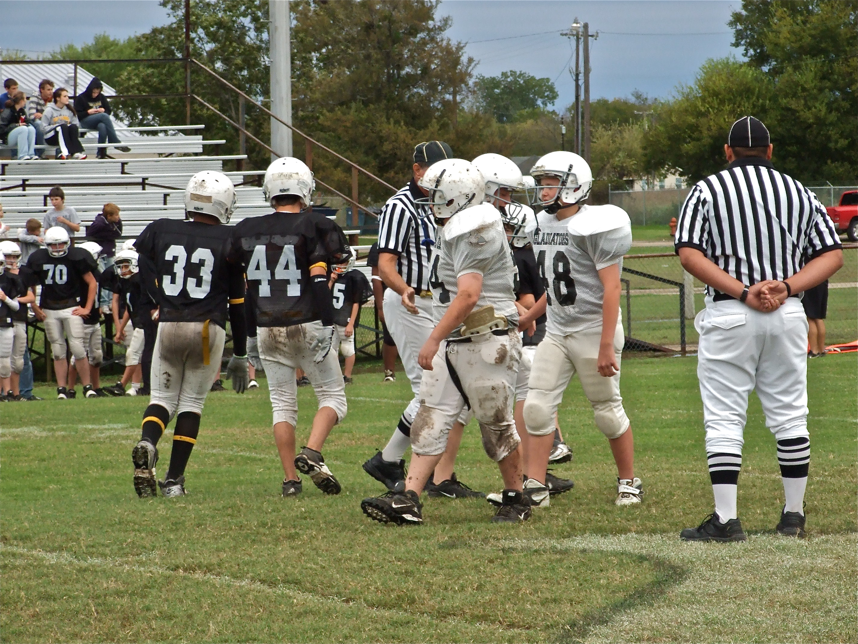 Italy JH Gladiators get fan support against Dawson Bulldogs « previous story album next » Captain’s shake hands — Game captain’s John Byers(54) and Bailey Walton(48) tell the Bulldog captains, “good luck.” (Barry Byers) Download original photo