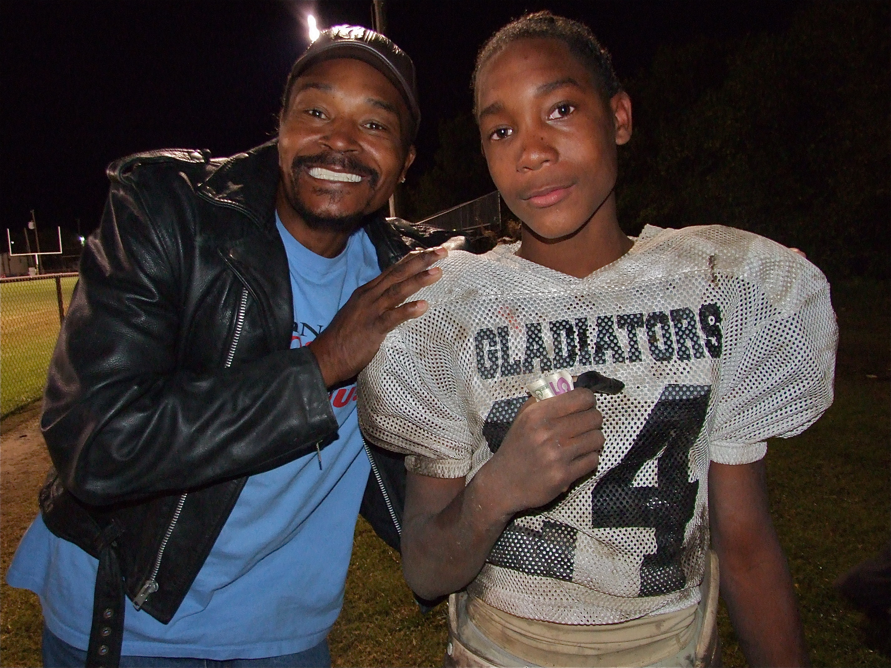 Italy JH Gladiators get fan support against Dawson Bulldogs « previous story album next » Father and Son — Trevon Robertson with his dad. (Barry Byers) Download original photo