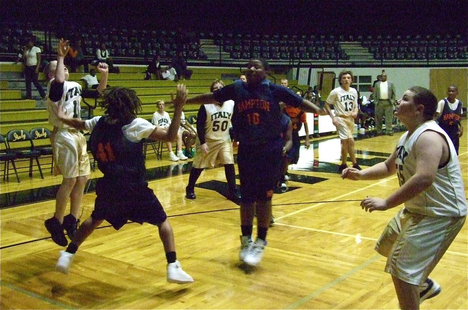 Hampton Prep Pheonix singed nets against Italy’s Junior High Boys « previous story album next » J.T. from the baseline — J.T. Escamilla(12) tries to shoot while the Pheonix defense flies at him. (Barry Byers) Download original photo
