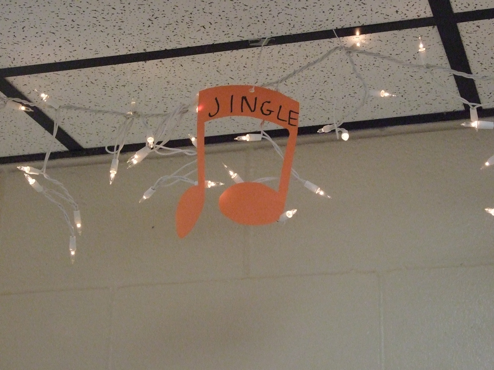 Italy High School has decoration contest « previous story album next » Jingles hang from the ceiling — The class cut out each music note and helped hang them. (Anne Sutherland) Download original photo