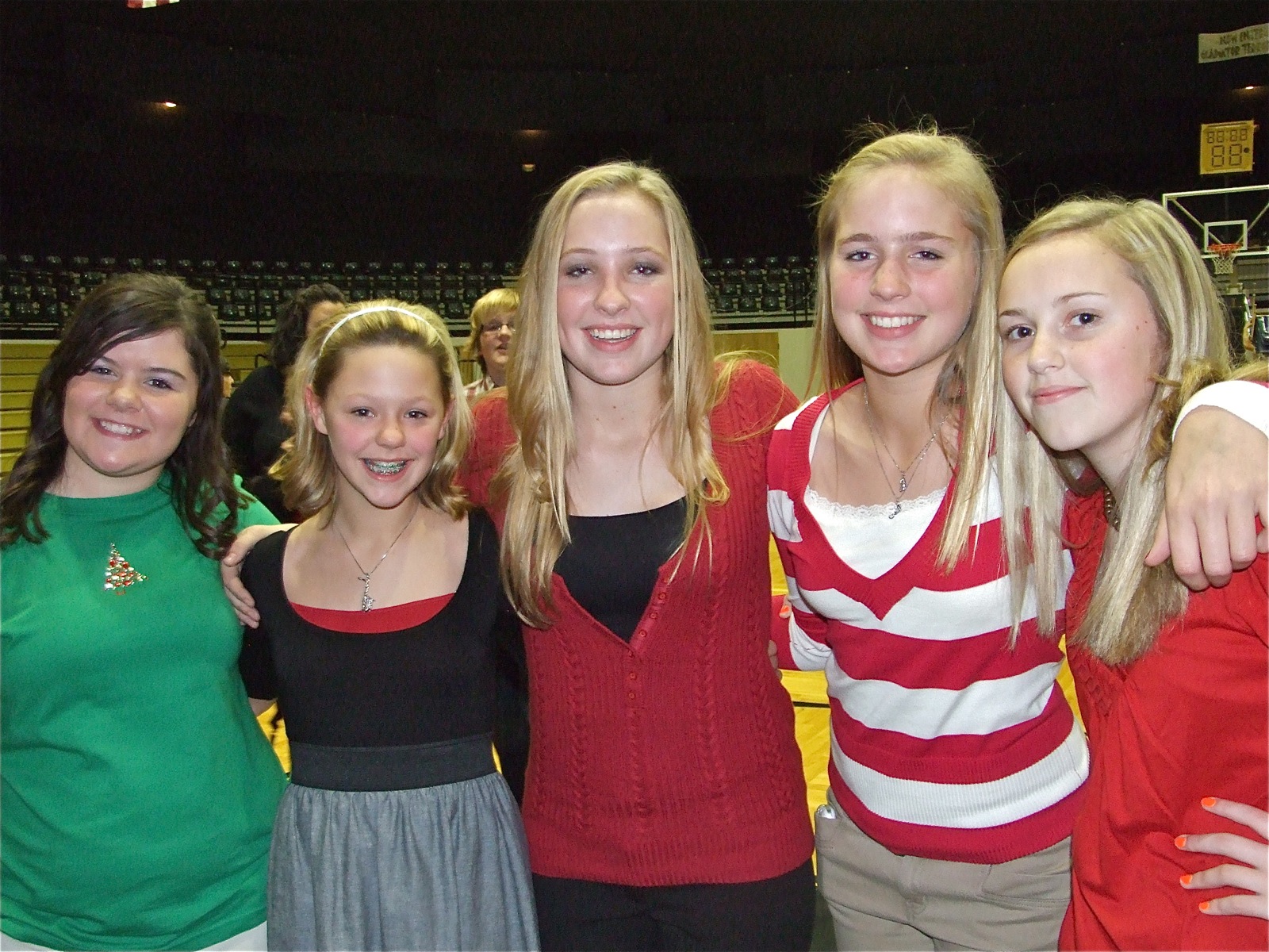 7th Graders Rock — Bailey DeBorde, Bailey Eubank, Jaclynn Lewis, Madison Washington and Kelsey Nelson are proud of their 7th grade class’s performance during the Christmas Concert. (Barry Byers)