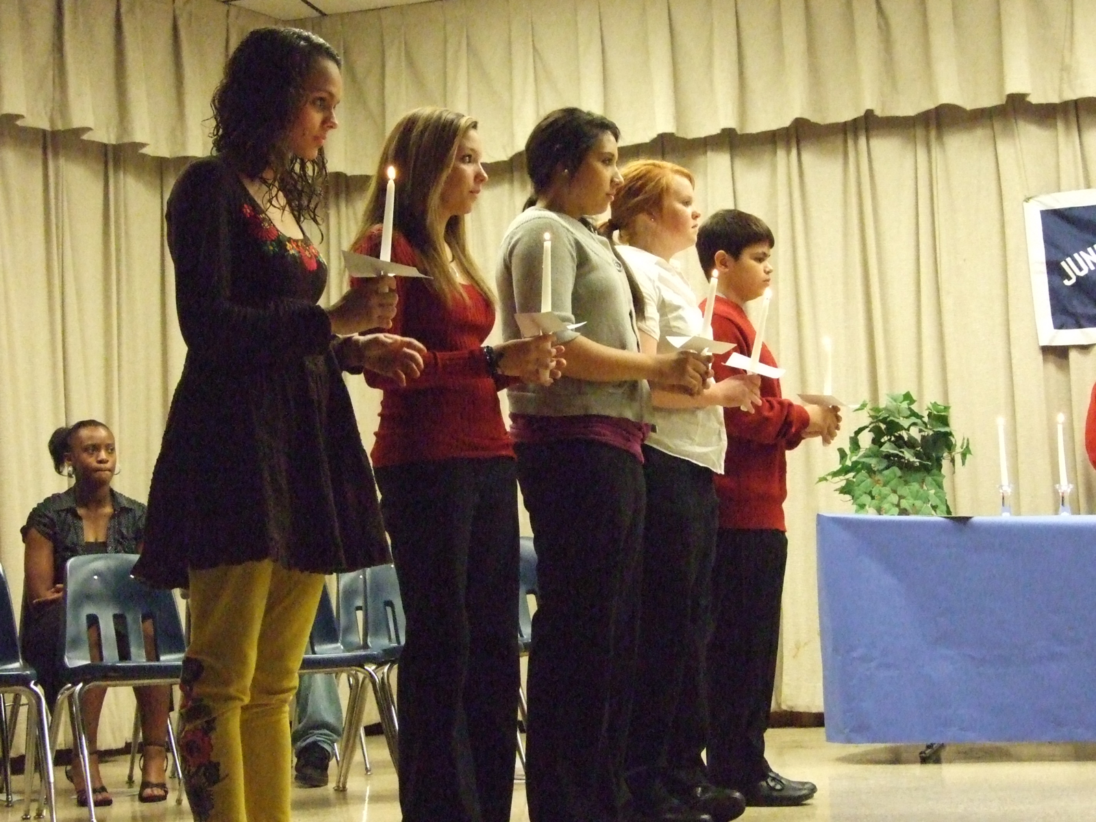 NJHS Inducts New Members « previous story album next » They have done their duty — Anna Viers, Morgan Cockeram, Alyssa Richards, Katie Byers and Reid Jacinto wait to pass their office. (Anne Sutherland) Download original photo