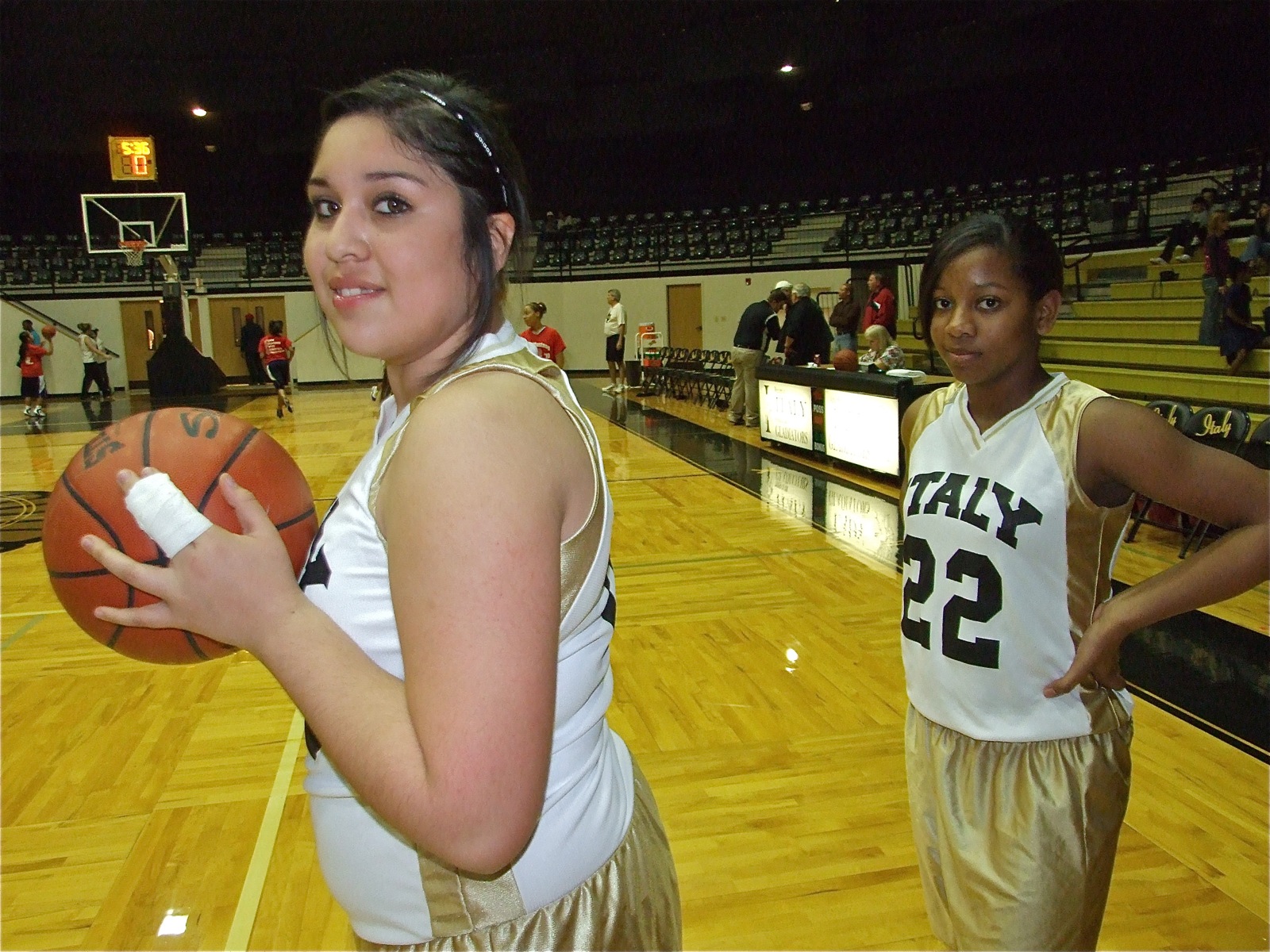 Italy Junior High girls split games with Red Oak Life « previous story album next » Two tough — Monserrat Figueroa and Bernice Hailey(22) get warmed up before the game against Red Oak Life. (Barry Byers) Download original photo