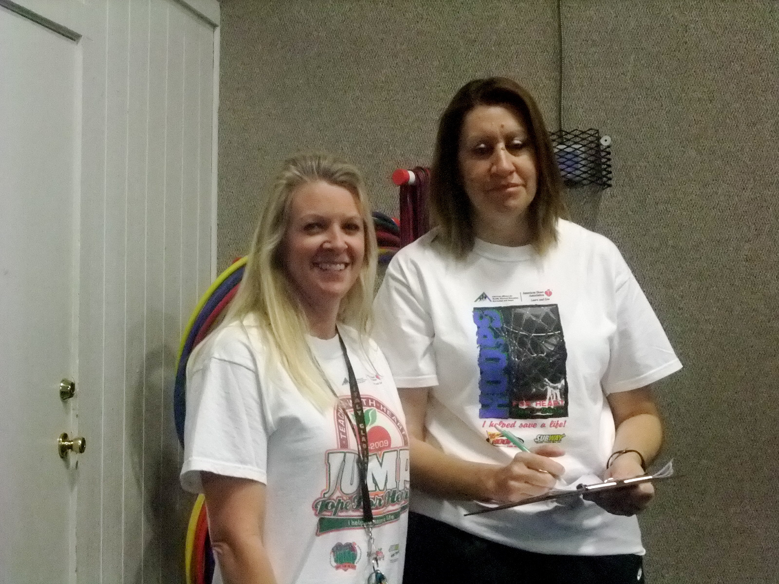 Hoops and Jump Rope for heart « previous story album next » Teacher and assistant watching — Angie Janek said, “We are doing hoops for Heart and Jump Rope for Heart.” (Cindy Sutherland) Download original photo