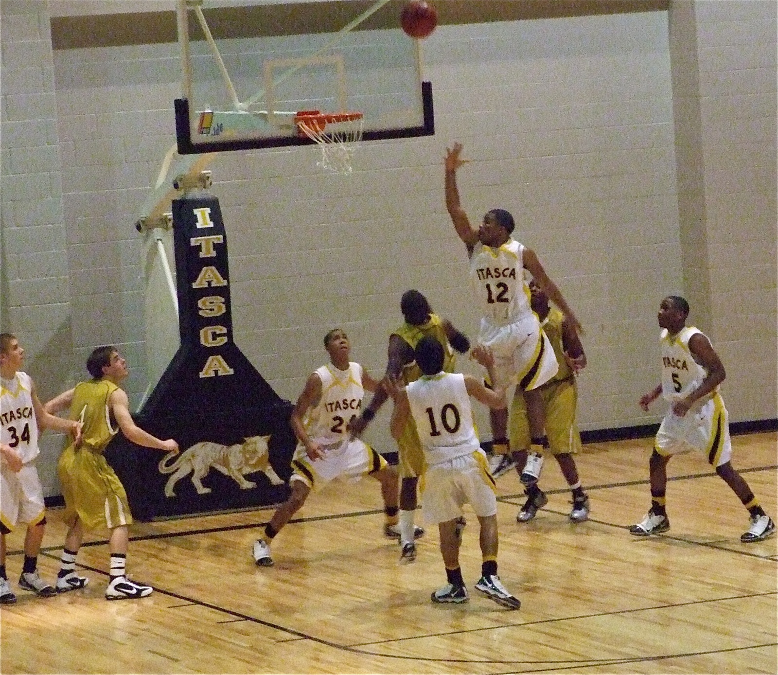 Gladiators sweep Itasca, claim District Championship « previous story album next » No contest — Jasenio Anderson(11) penetrates the middle of Itasca’s defense and floats a shot over Itasca’s Desmond Guy to score again. (Barry Byers) Download original photo