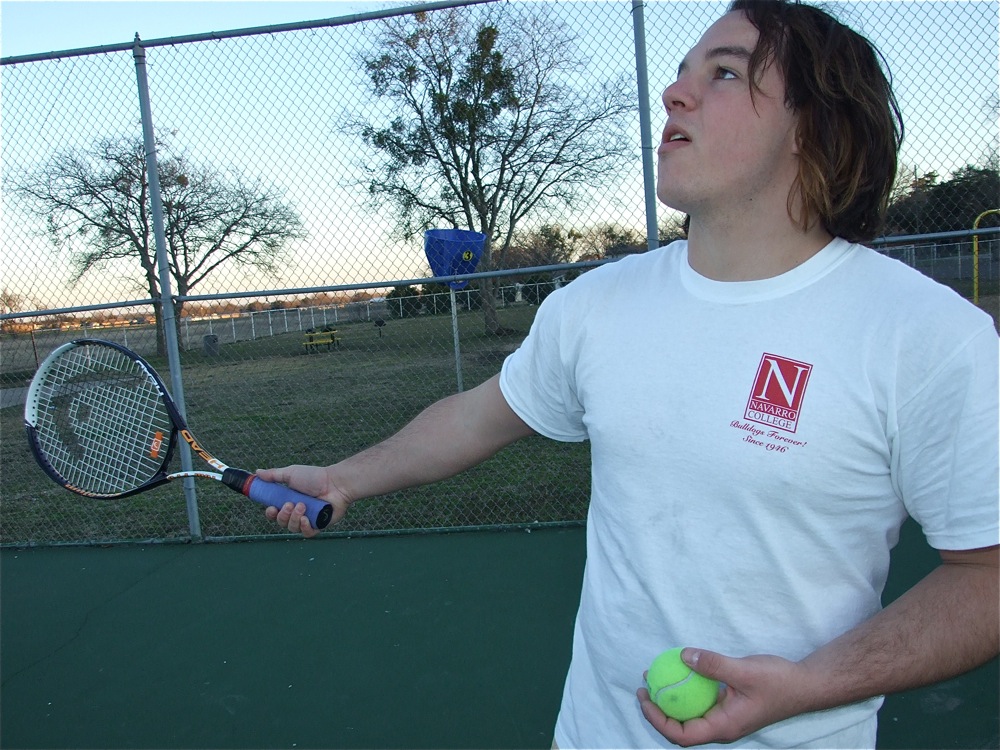 Gladiator rehearsal — Thumbs up or thumbs down? Zachary Hernandez practices his end of the battle request to the crowd on whether he should let his opponent survive, with a thumbs up, or end the match with a thumbs down. (Barry Byers)