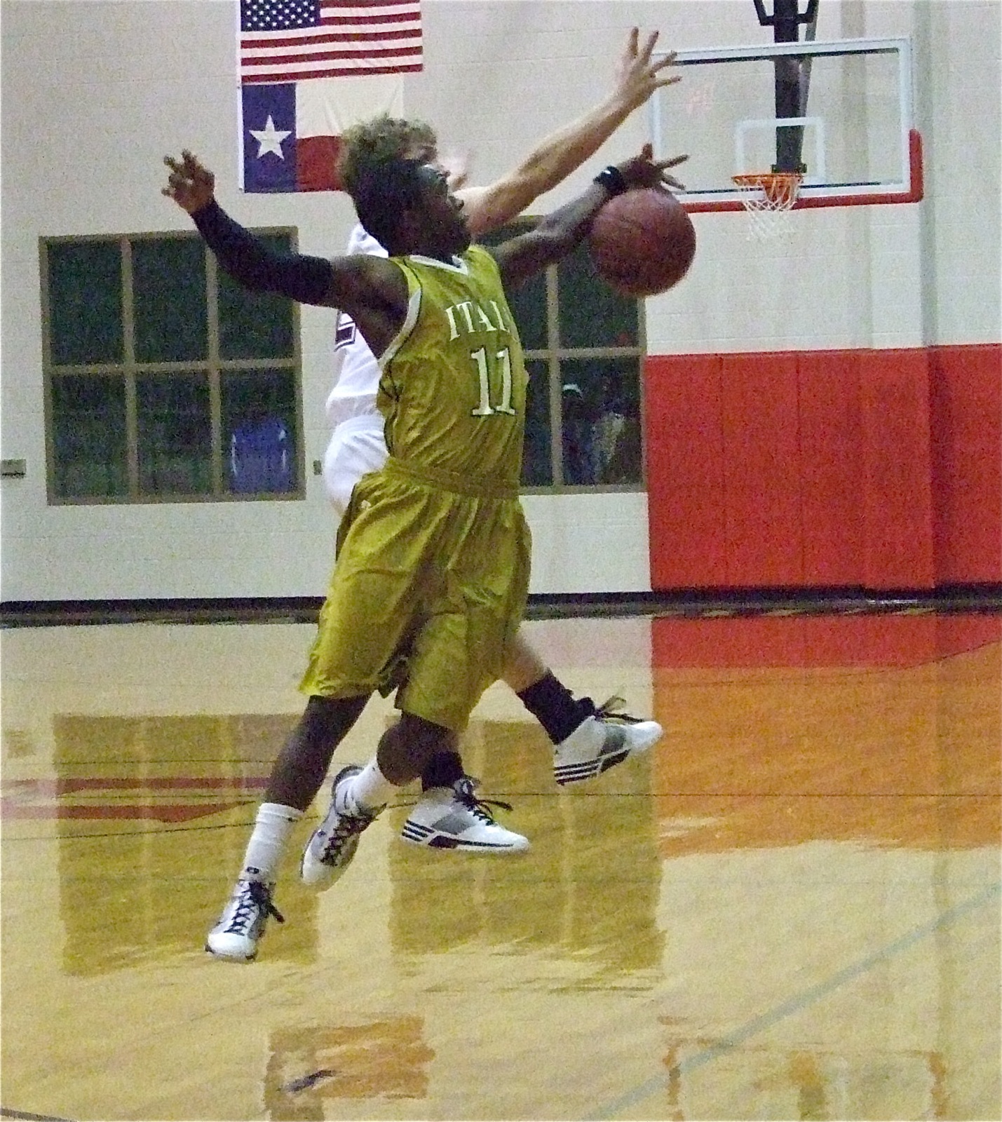 Gladiators defeat DeLeon in Area 85-50. Bring on Gateway! « previous story album next » Up for grabs — With the area championship up for grabs, Italy Gladiator Jasenio Anderson(11) out wrestles a DeLeon Bearcat for control of the ball. (Barry Byers) Download original photo
