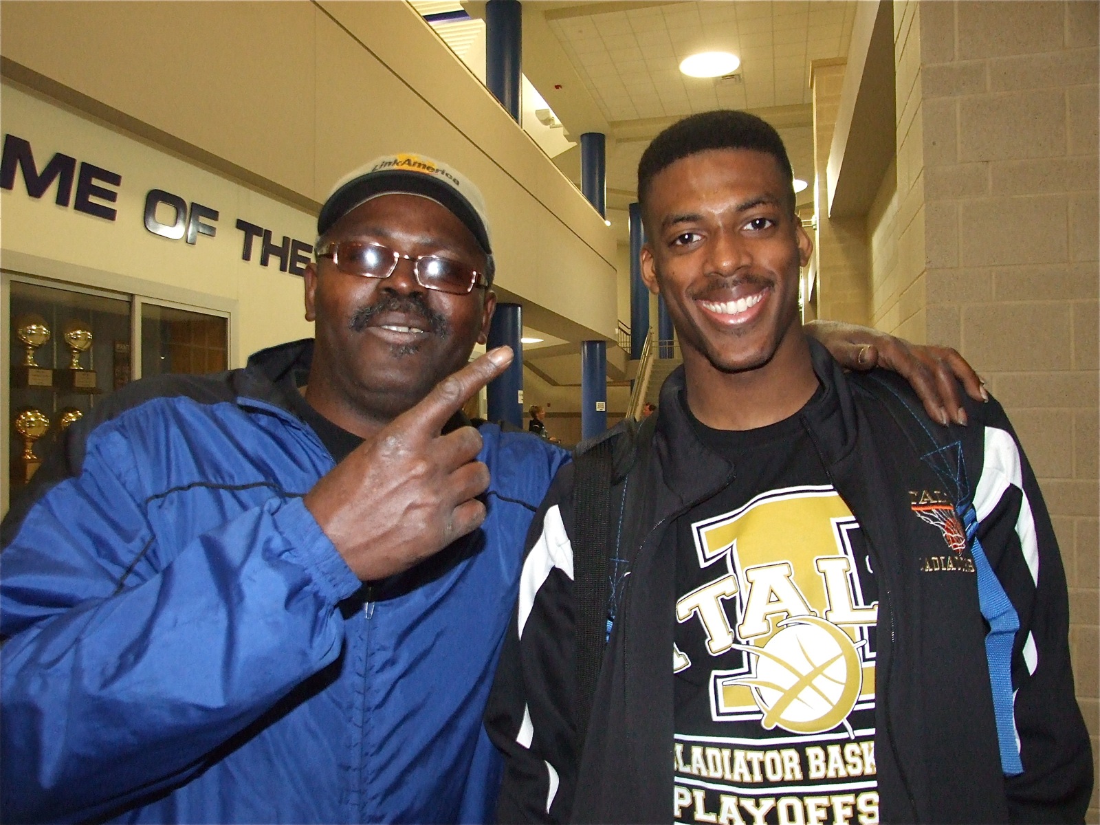 Gladiators defeat Gateway 88-68. Abilene, here we come! « previous story album next » Happy 18th, John! — John Isaac celebrates his 18th Birthday with his dad with a 19-point performance and a win over Gateway in the regional quarterfinal championship. (Barry Byers) Download original photo
