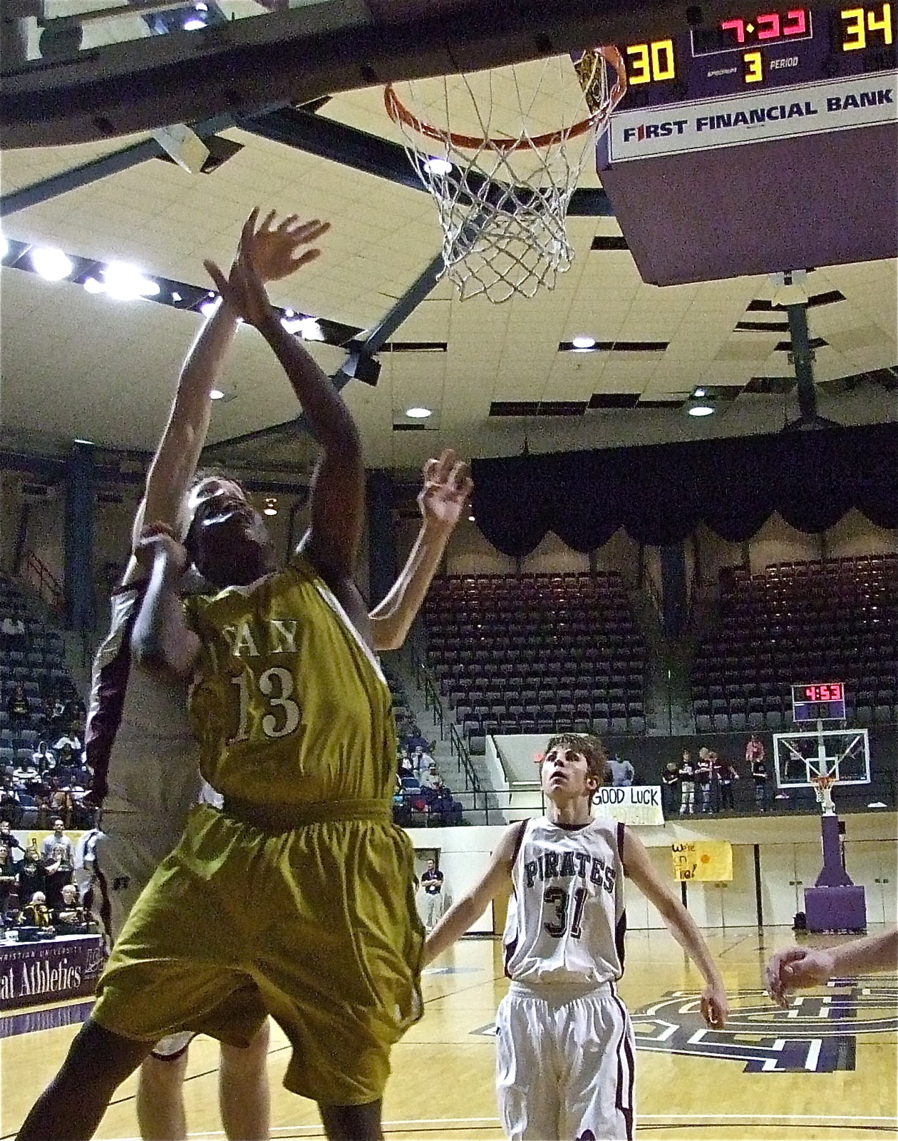 Gladiators continue on! Defeated Clyde Eula 52-51, play Bronte next « previous story album next » Larry battles bigs — Mayberry defends his territory and drops in 2 points. (Barry Byers) Download original photo
