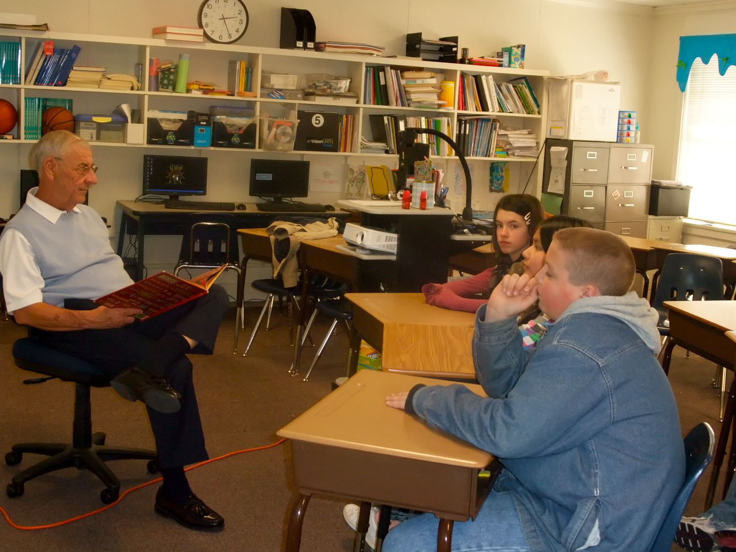 Stafford Celebrates Read Across America « previous story album next » Superintendent Jimmie Malone — Jimmy Malone took time out of his busy schedule to have fun reading to the sixth graders. (Cindy Sutherland) Download original photo