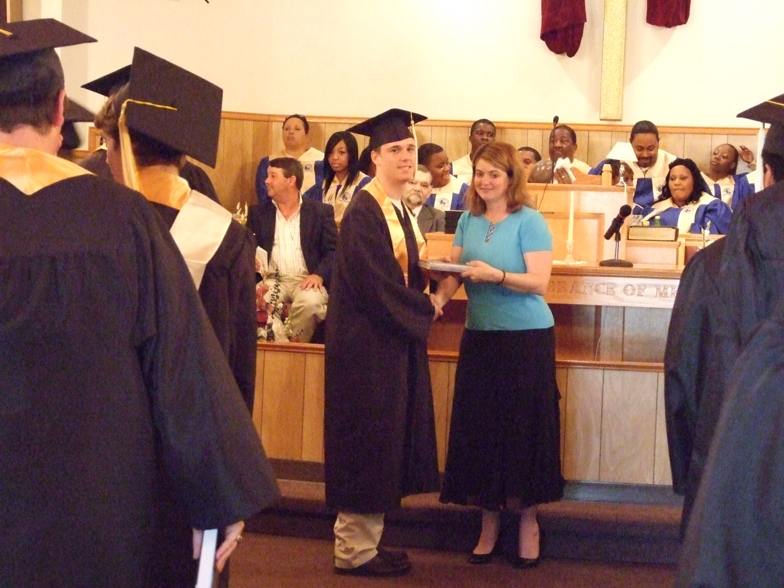 Baccalaureate Service for IHS’ Seniors « previous story album next » Austin is back — Senior Austin Childers receives his bible from Ms. Parker. (Anne Sutherland) Download original photo